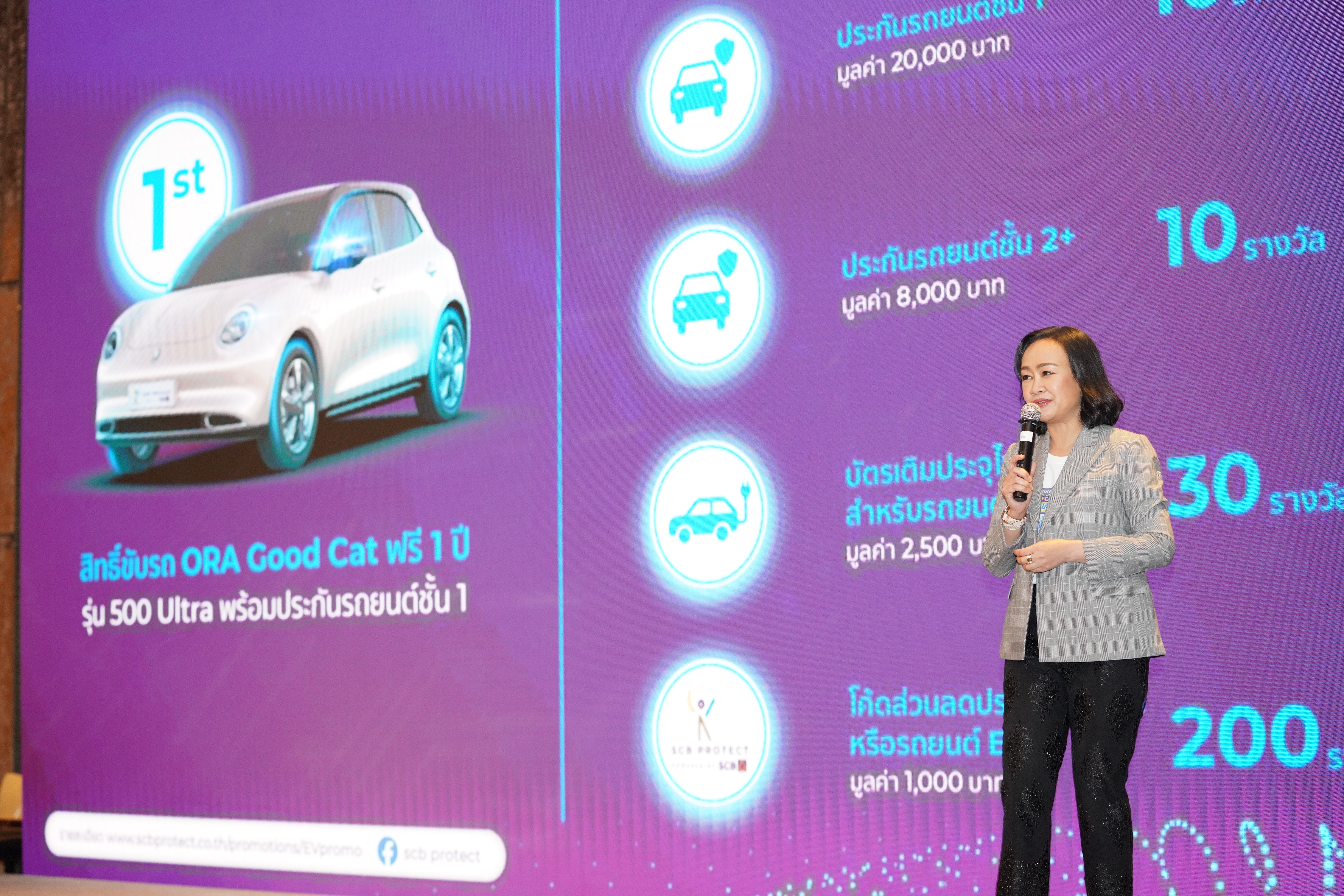 นอกจากนี้ ส่งแคมเปญ "SCB Protect คุ้มครองเพื่ออนาคต ลุ้นขับฟรีรถ EV 1 ปี" ด้วยการเปิดตัวประกันรถยนต์ EV สุดคุ้มผ่านช่องทางดิจิทัล https://online.scbprotect co.th/ ที่ให้ความคุ้มครองพิเศษครอบคลุมไปถึงแท่นซาร์จ รถยนต์ไฟฟ้า (Wall Box) ด้วยวงเงินสูงถึง 50,000 บาท พร้อมโปรโมชั่นสวนลดพิเศษ โดยคาดว่าประกันรถยนต์ EV จะมีส่วนช่วยสนับสนุนให้ประเทศไทยก้าวเข้าสู่สังคมคาร์บอนต่ำได้เร็วขึ้น เริ่มตั้งแต่ 1 ก.ย.- 30 พ.ย.2565