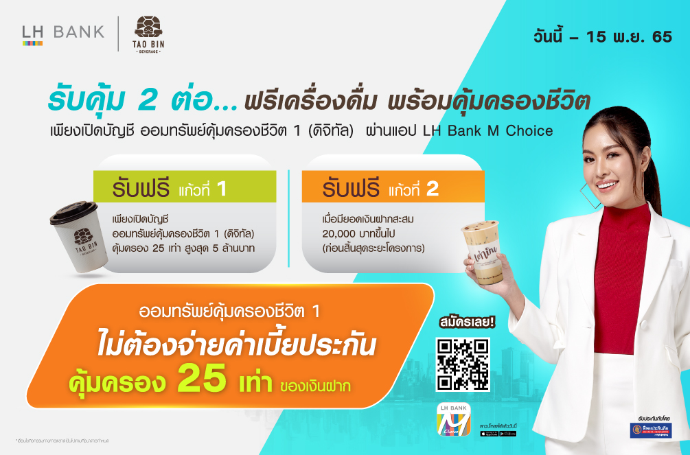 โปรโมชันพิเศษ! สำหรับลูกค้าใหม่ ตั้งแต่วันนี้ ถึง 15 พ.ย. 65 รับฟรี...เครื่องดื่มเต่าบิน เมื่อเปิดบัญชีออมทรัพย์ดิจิทัล คุ้มครองชีวิต 1 รับคุ้ม 2 ต่อ ฟรีเครื่องดื่ม พร้อมได้ความคุ้มครองชีวิต กับโปรโมชันพิเศษ