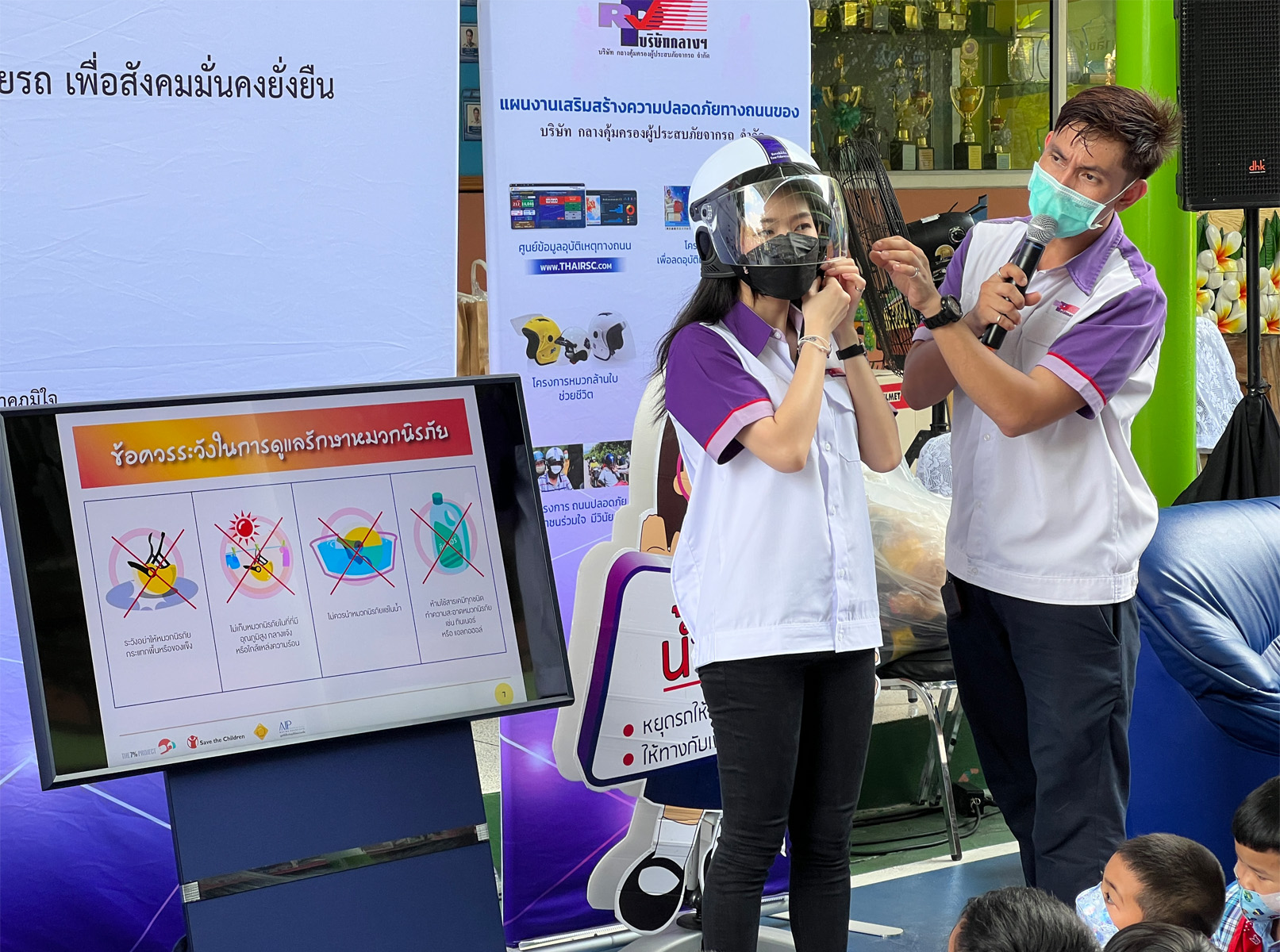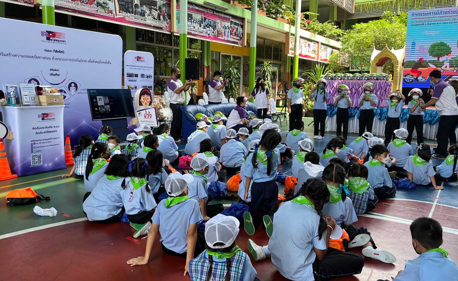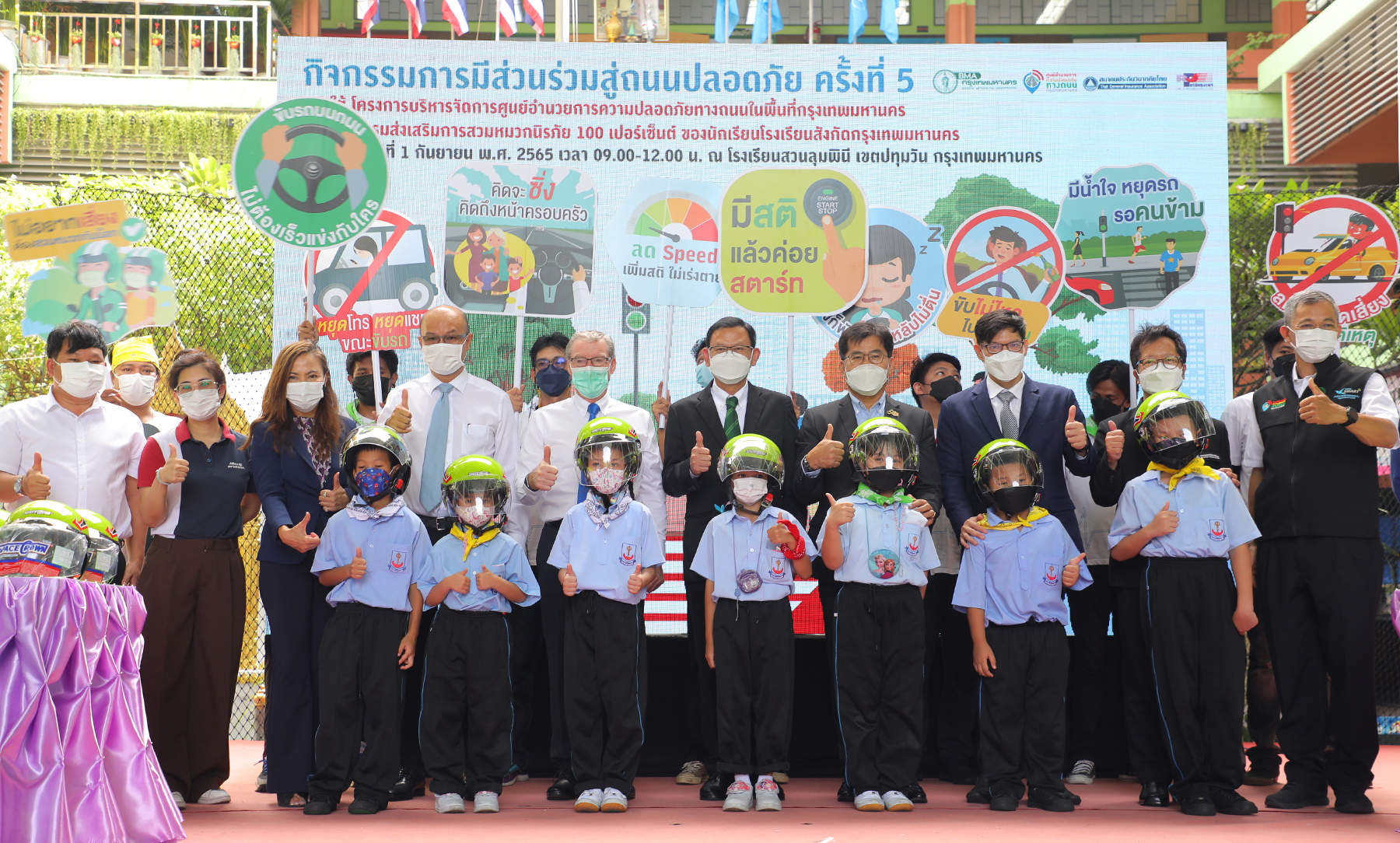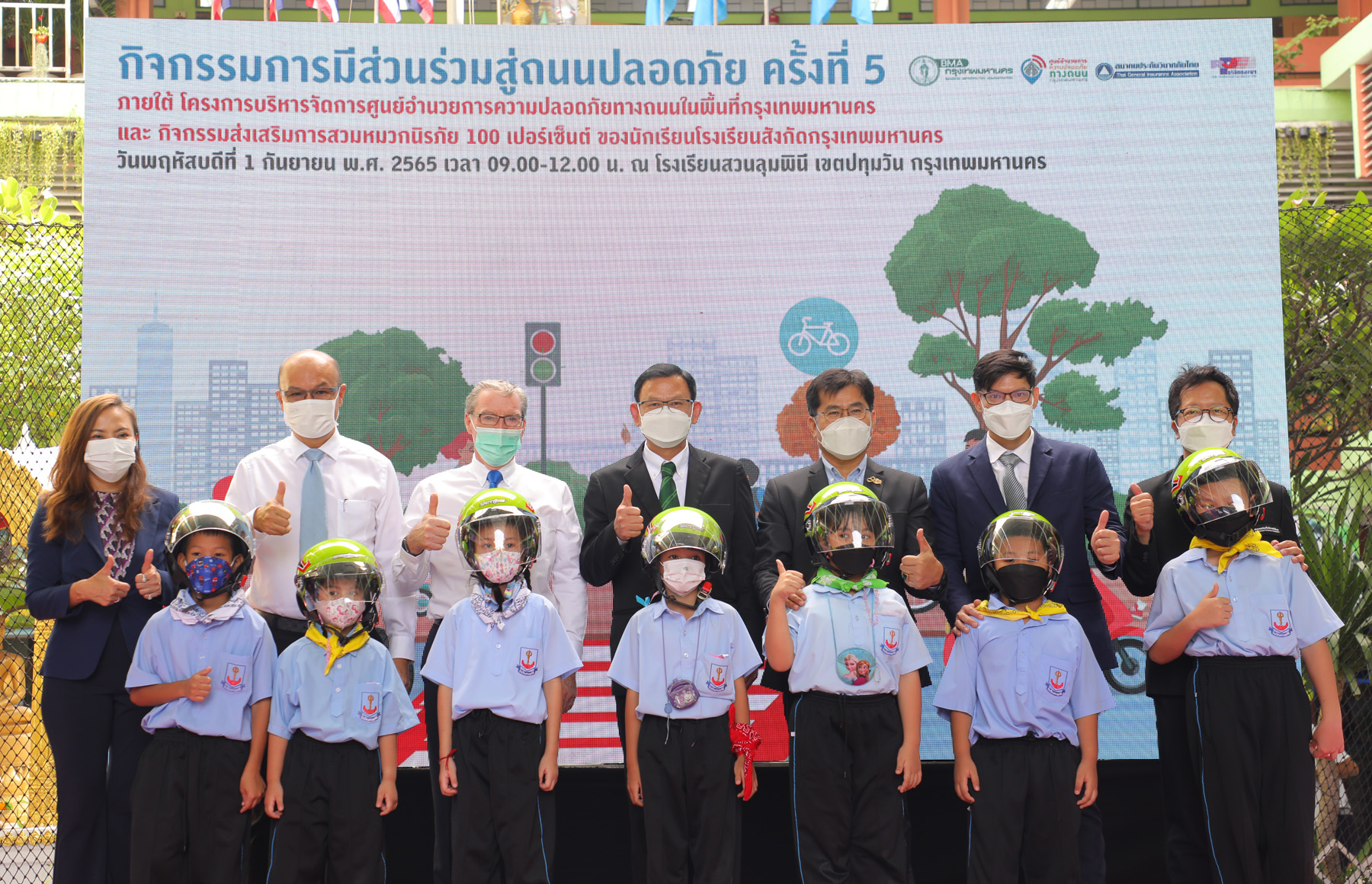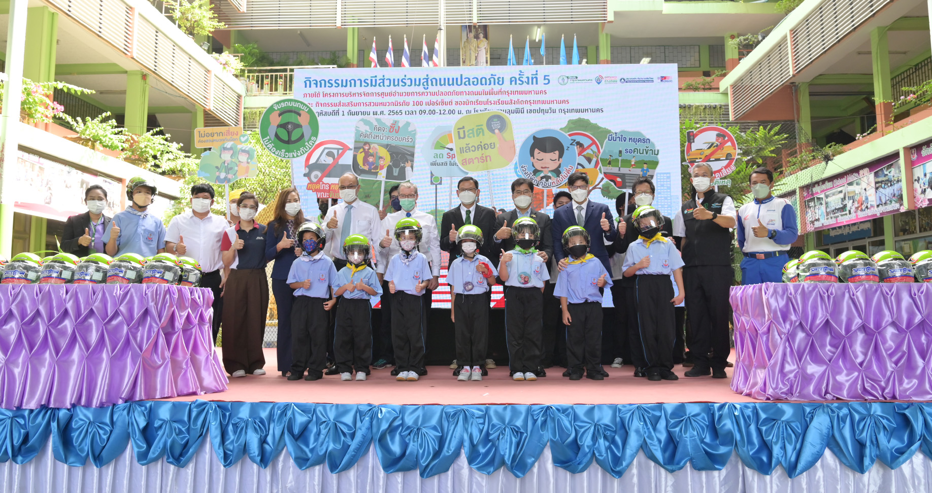 โดยภายในงานมีพิธีมอบและสวมหมวกนิรภัยโดย นายณรงค์ เรืองศรี รองปลัดกรุงเทพมหานคร นายประสิทธิ์ คำเกิด รองกรรมการผู้จัดการ บริษัท กลางคุ้มครองผู้ประสบภัยจากรถ จำกัด พร้อมผู้แทนจากสมาคมประกันวินาศภัยไทย บริษัท กรุงไทยพานิชประกันภัย จำกัด (มหาชน) , บริษัท จรัญประกันภัย จำกัด (มหาชน) , บริษัท นำสินประกันภัย จำกัด (มหาชน) , บริษัท วิริยะประกันภัย จำกัด (มหาชน) , บริษัท อลิอันซ์ อยุธยา ประกันภัย จำกัด (มหาชน) , บริษัท เอไอจี ประกันภัย (ประเทศไทย) จำกัด (มหาชน) , บริษัท แปซิฟิค ครอส ประกันสุขภาพ จำกัด (มหาชน) , บริษัท ที.ไอ.ไอ. จำกัด หรือสถาบันประกันภัยไทย และบริษัท ไทยฮอนด้า จำกัด ร่วมมอบและสวมหมวกนิรภัยในโครงการให้กับนักเรียน