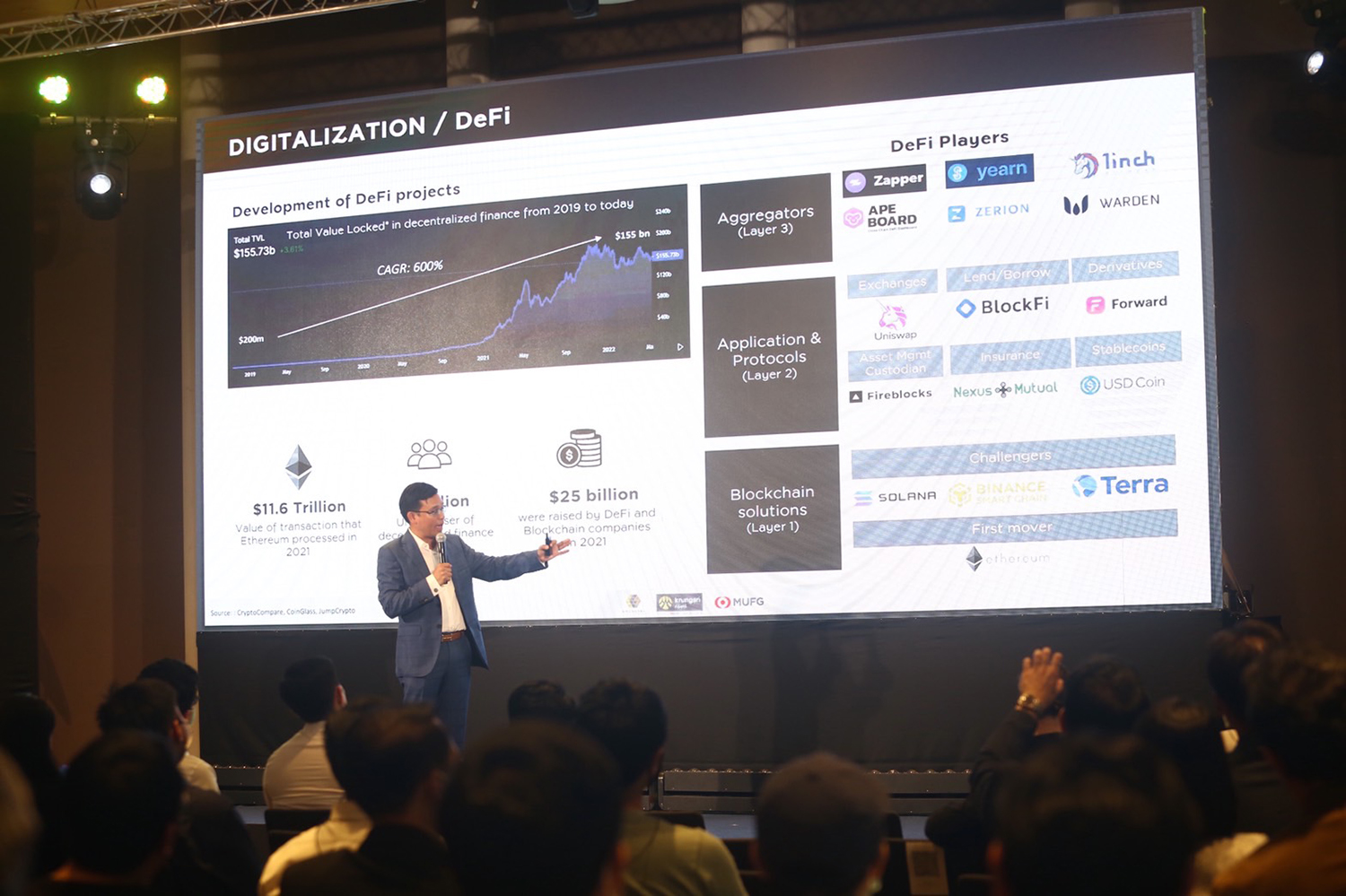 นายแซม ตันสกุล เผยต่อว่า “6 Tech ที่ Venture Capital สนใจจะลงทุนในปี 2023 เพื่อให้เป็นข้อมูลกับสตาร์ทอัพไทย (1) DeFi หรือที่เราเรียกว่า Decentralized Finance วันนี้เราเห็นการเติบโตของ Decentralized Finance สูงขึ้นมากมีเทคโนโลยีที่ต้องการตัดคนกลางออก เราเห็นตลาดของ DeFi ที่เติบโตขึ้นอย่างรวดเร็ว (2) Metaverse คือกลุ่มหนึ่งที่นักลงทุนให้ความสนใจเป็นอย่างมาก จากการที่ตลาดกำลังพัฒนาใน web 3.0 (3) Cyber Security ยังคงมาแรงอยู่เรื่อยๆ และกระโดดขึ้นมากในปี 2021 เนื่องจากเมื่อมีการเพิ่มขึ้นของการทำธุรกรรมไร้ตัวกลาง ก็ทำให้เกิดอาชญากรรมทางออนไลน์เพิ่มมากขึ้นตามด้วย