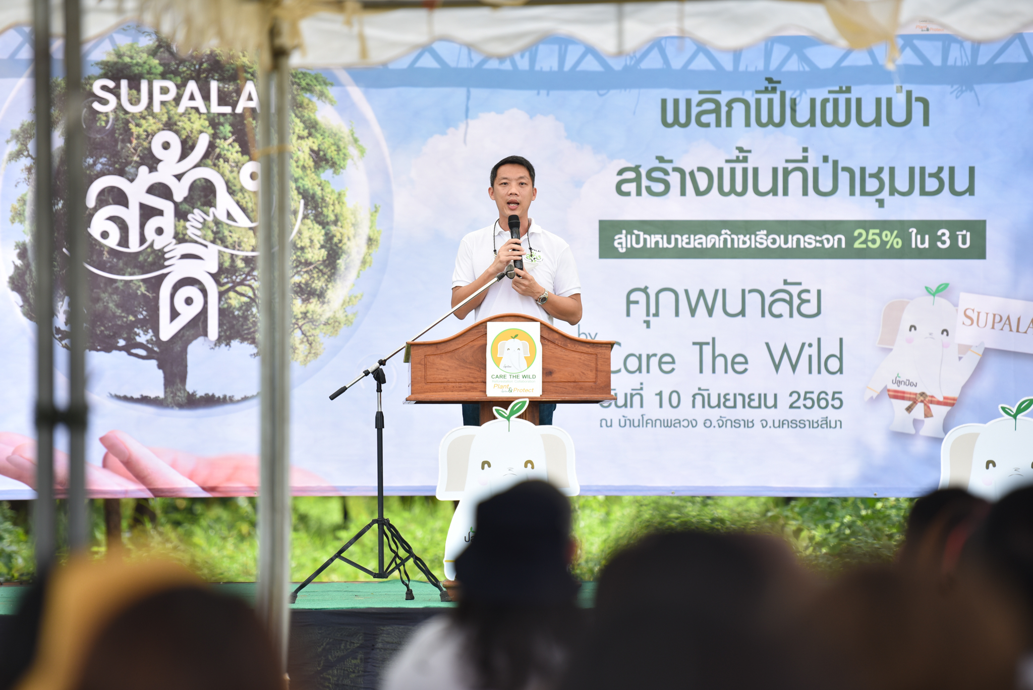 นางนันทนา บุณยานันต์ ผู้อำนวยการสำนักจัดการป่าชุมชน กรมป่าไม้ กล่าวขอบคุณโครงการ Care The Wild ซึ่งเป็นแพลตฟอร์มในการระดมทุนจากภาคธุรกิจให้มาปลูกป้องป่า เพื่อสร้างพื้นที่สีเขียวให้กับประเทศไทย ขอขอบคุณ บมจ.ศุภาลัย ที่เข้ามาสนับสนุนในการปลูกต้นไม้ และขอบคุณที่บริษัทฯ เชื่อมั่นและเห็นความสำคัญของกรมป่าไม้ที่จะเข้ามาประสานงานเชื่อมโยงชุมชนนำมาสู่การปลูกต้นไม้ให้เป็นป่าในพื้นที่ชุมชนในครั้งนี้ ชุมชนบ้านโคกพลวงเป็นชุมชนคนรักป่าและมีจิตสำนึกในการหวงแหนป่าที่ได้ร่วมดูแลรักษาป่าชุมชน และชุมชนแห่งนี้ก็จะปกป้องและดูแลต้นไม้ให้เติบใหญ่และจะดูแลรักษาไปอีก 10 ปี
