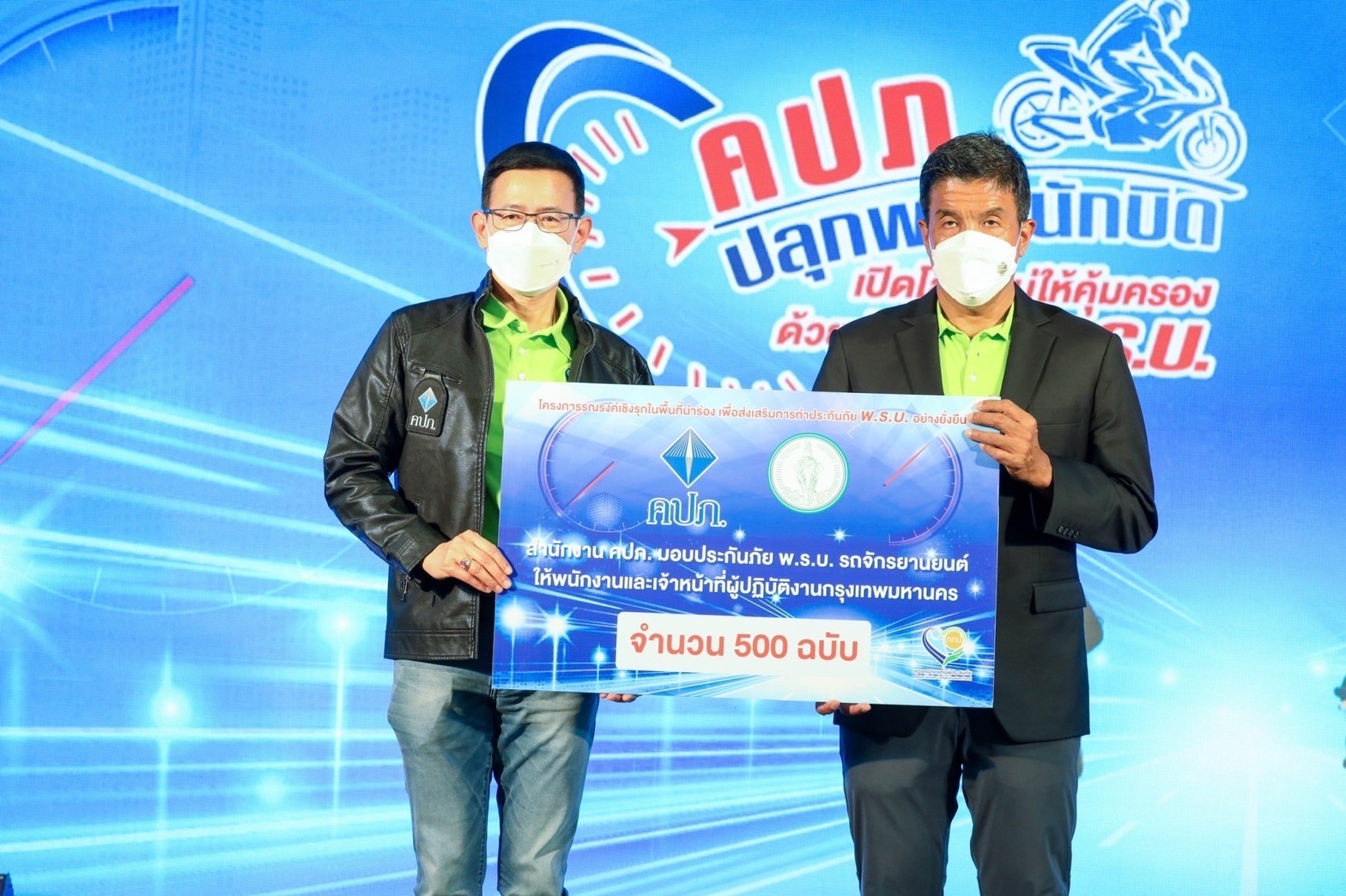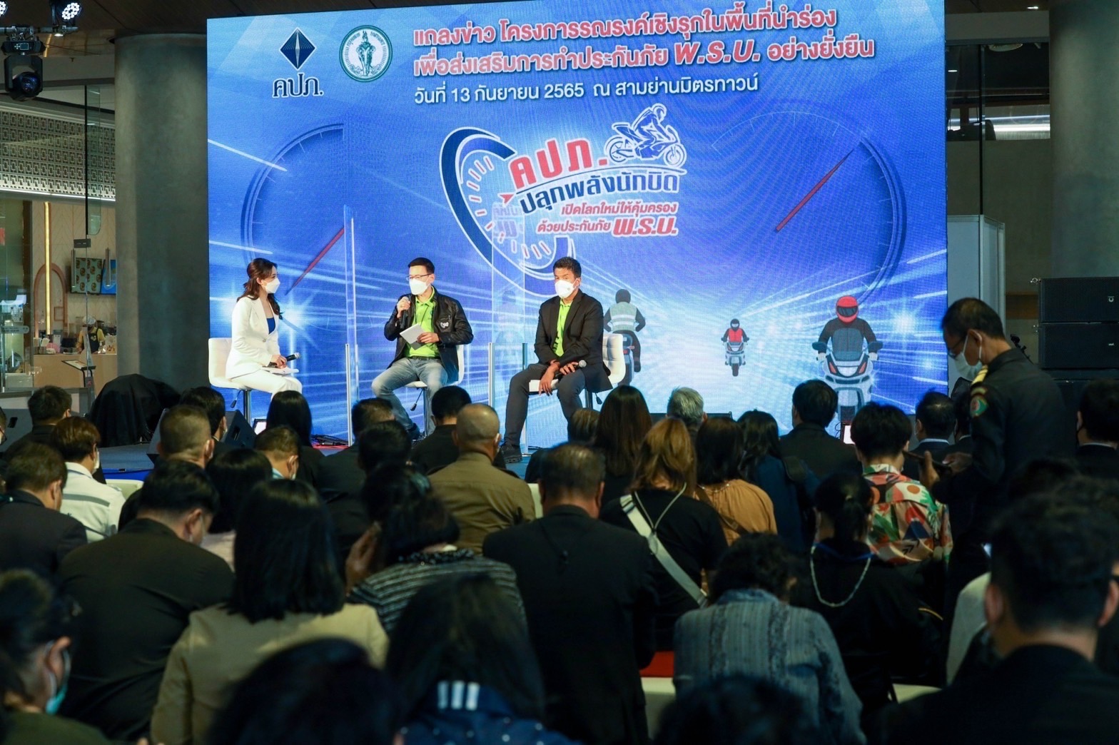 14 กันยายน 2565 : ดร.สุทธิพล ทวีชัยการ เลขาธิการคณะกรรมการกำกับและส่งเสริมการประกอบธุรกิจประกันภัย (เลขาธิการ คปภ.) และ ดร.ชัชชาติ สิทธิพันธุ์ ผู้ว่าราชการกรุงเทพมหานคร ร่วมแถลงข่าวเปิดตัว “โครงการรณรงค์เชิงรุกในพื้นที่นำร่อง เพื่อส่งเสริมการทำประกันภัย พ.ร.บ. อย่างยั่งยืน” ภายใต้ชื่องาน “คปภ. ปลุกพลังนักบิด เปิดโลกใหม่ให้คุ้มครองด้วยประกันภัย พ.ร.บ.” (วันนี้) 13 กันยายน 2565 ณ ลานกิจกรรม ชั้น G สามย่านมิตรทาวน์ กรุงเทพฯ โดยมีผู้แทนจากหน่วยงานภาคีเครือข่ายต่าง ๆ ที่เกี่ยวข้อง และสื่อมวลชนเข้าร่วมงานเป็นจำนวนมาก