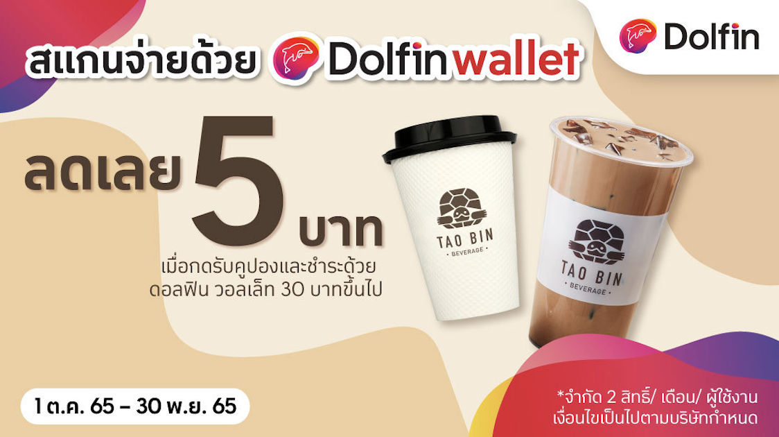 20 กันยายน 2565 : คุณอุษณีย์ เลาหะวรนันท์ ผู้อำนวยการแผนกการตลาด กลุ่มบริษัทเซ็นทรัล เจดี ฟินเทค ผู้ให้บริการดอลฟิน วอลเล็ท กล่าวว่า ดอลฟิน วอลเล็ท แอปพลิเคชันกระเป๋าเงินอิเล็กทรอนิกส์ ที่มีผู้ใช้บริการกว่า 4.5 ล้านราย ล่าสุดขยายจุดรับชำระเพื่อให้บริการครอบคลุมการใช้ชีวิตของลูกค้าทุกกลุ่มอย่างต่อเนื่อง ด้วยการจับมือกับ “เต่าบิน” (TAO BIN) ผู้ให้บริการคาเฟ่อัตโนมัติอัตโนมัติ 24 ชั่วโมงที่มีจุดจำหน่ายมากกว่า 3,000 ตู้ทั่วประเทศ โดยเปิดให้บริการชำระเงินค่าสินค้าเครื่องดื่มผ่านดอลฟิน วอลเล็ท ได้ที่ตู้เต่าบินทุกแห่งแล้ววันนี้