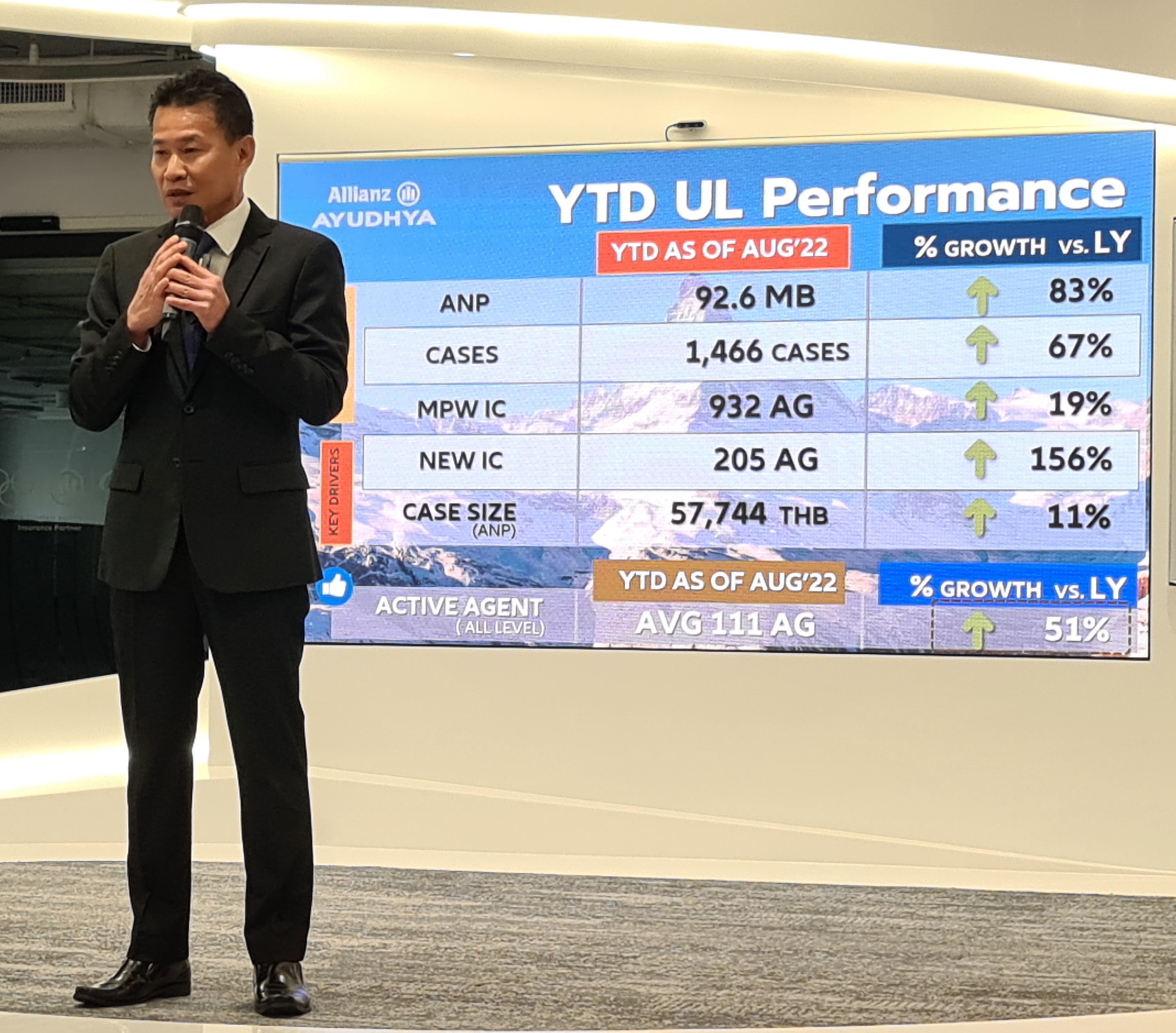 อลิอันซ์ อยุธยา มองเห็นถึงโอกาสในการพัฒนายกระดับตัวแทนให้เป็น “ที่ปรึกษาทางการเงิน” เพื่อสามารถให้คำปรึกษาและช่วยวางแผนให้กับลูกค้าของเราในสถานการณ์นี้ได้ผ่านการเสนอขายประกันชีวิตควบการลงทุน หรือ ยูนิต ลิงค์ โดยใน 8 เดือนที่ผ่านมา เราประสบความสำเร็จอย่างน่าพอใจในการเพิ่มจำนวน “ที่ปรึกษาทางการเงิน” ปัจจุบันเรามีผู้ที่สามารถให้คำปรึกษาทางการเงิน และนำเสนอผลิตภัณฑ์เพื่อการวางแผนการเงิน ให้กับลูกค้า 932 ท่าน โดยตั้งเป้าเพิ่มเป็น 1,000 ท่านภายในสิ้นปี 65 นี้ และมีจำนวนผู้ที่ได้รับใบอนุญาตใหม่ 205 คน เติบโตถึง 156%