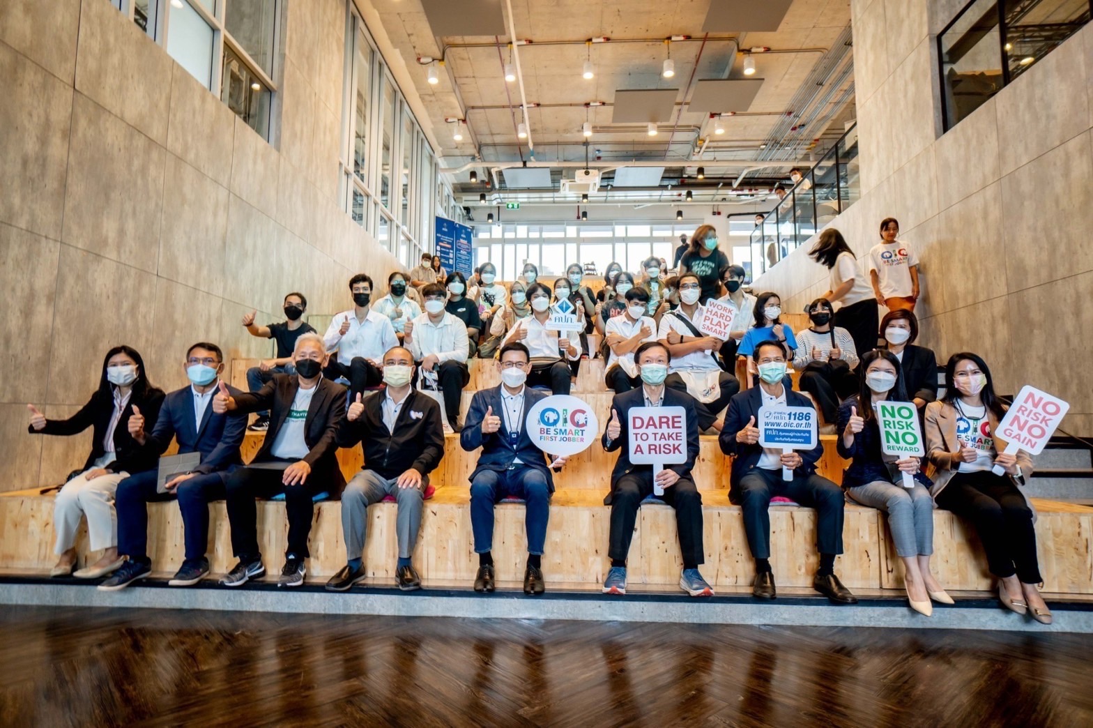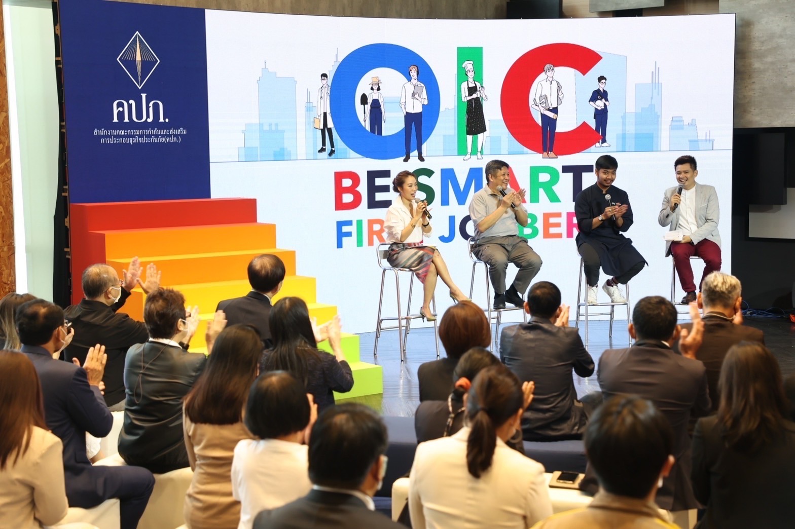 “การดำเนินกิจกรรมตามโครงการ OIC Be Smart First Jobber ในครั้งนี้ สำนักงาน คปภ. เชื่อว่าจะช่วยเข้าถึงกลุ่มนิสิตนักศึกษาซึ่งเป็นกลุ่ม Gen Z และมีจำนวนมากถึง 1.4 ล้านคน โดยจะเป็นโมเดลต้นแบบของการเรียนรู้แบบใหม่ ที่ดีไซน์โดยเฉพาะให้เหมาะสมสำหรับกลุ่มผู้บริโภคยุคใหม่ เพื่อช่วยสร้างความรู้ ความเข้าใจ และความตระหนักถึงความสำคัญของการประกันภัยที่เป็นเครื่องมือในการบริหารความเสี่ยงในทุก ๆ ช่วงเวลาของชีวิต ตลอดจนเข้าใจบทบาทภารกิจของสำนักงาน คปภ. ในฐานะที่เป็นหน่วยงานกำกับดูแลระบบประกันภัยและคุ้มครองสิทธิประโยชน์ของผู้เอาประกันภัย” เลขาธิการ คปภ. กล่าวในตอนท้าย ![]()