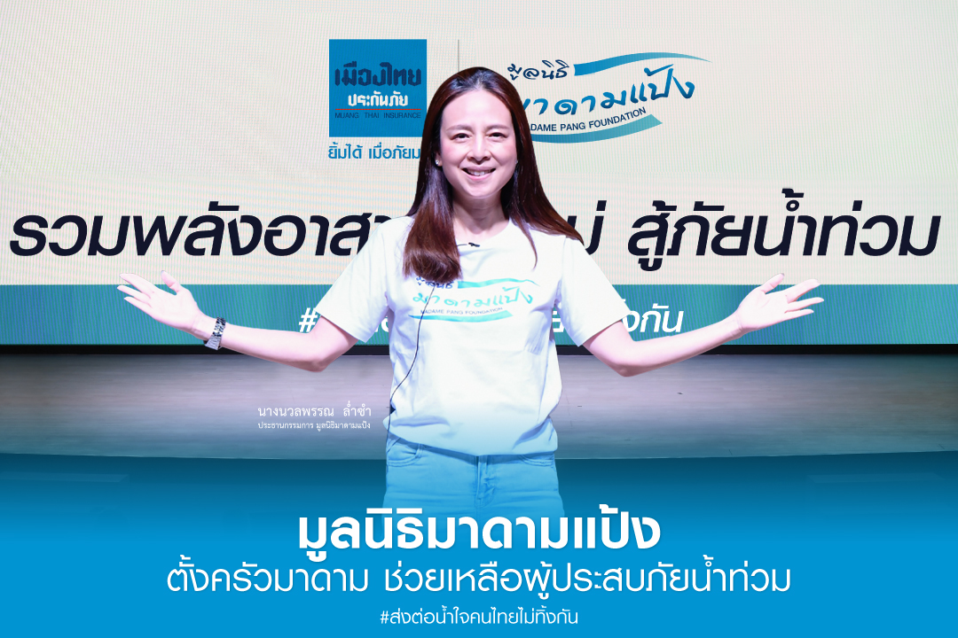 นางนวลพรรณ ล่ำซำ กรรมการผู้จัดการและประธานเจ้าหน้าที่บริหาร บริษัท เมืองไทยประกันภัย จำกัด (มหาชน) ในฐานะประธานกรรมการ มูลนิธิมาดามแป้ง กล่าวว่า “ในช่วงสถานการณ์น้ำท่วมจากผลกระทบของพายุโนรู มูลนิธิมาดามแป้ง ได้ประสานทีมอาสากล้าใหม่ ลงพื้นที่ตั้งครัวมาดาม ในพื้นที่ต่างจังหวัด เพื่อร่วมเป็นส่วนหนึ่งของการช่วยเหลือประชาชนในพื้นที่ โดยได้ตั้งครัวมาดาม แจกอาหารในพื้นที่อำเภอชนแดน และอำเภอศรีเทพ จังหวัดเพชรบูรณ์ รวมทั้งจังหวัดชัยภูมิ , นครสวรรค์ สุโขทัย และจัดทำถุงยังชีพมอบให้แก่ประชาชนในพื้นที่จังหวัดร้อยเอ็ด อุดรธานี และบุรีรัมย์ ซึ่งแต่ละพื้นที่มีประชาชนผู้ประสบภัยอาศัยอยู่หลายร้อยหลังคาเรือน และมีน้ำท่วมขังมาเป็นระยะเวลาหนึ่งแล้ว การลงพื้นที่นำอาหารและถุงยังชีพไปแจกจ่ายให้แก่ประชาชน นอกจากจะได้ช่วยบรรเทาความยากลำบากในการใช้ชีวิตของผู้ประสบภัยแล้ว ยังช่วยเติมเต็มกำลังใจแก่ผู้ที่เดือดร้อนจากเหตุการณ์ดังกล่าวอีกด้วย”