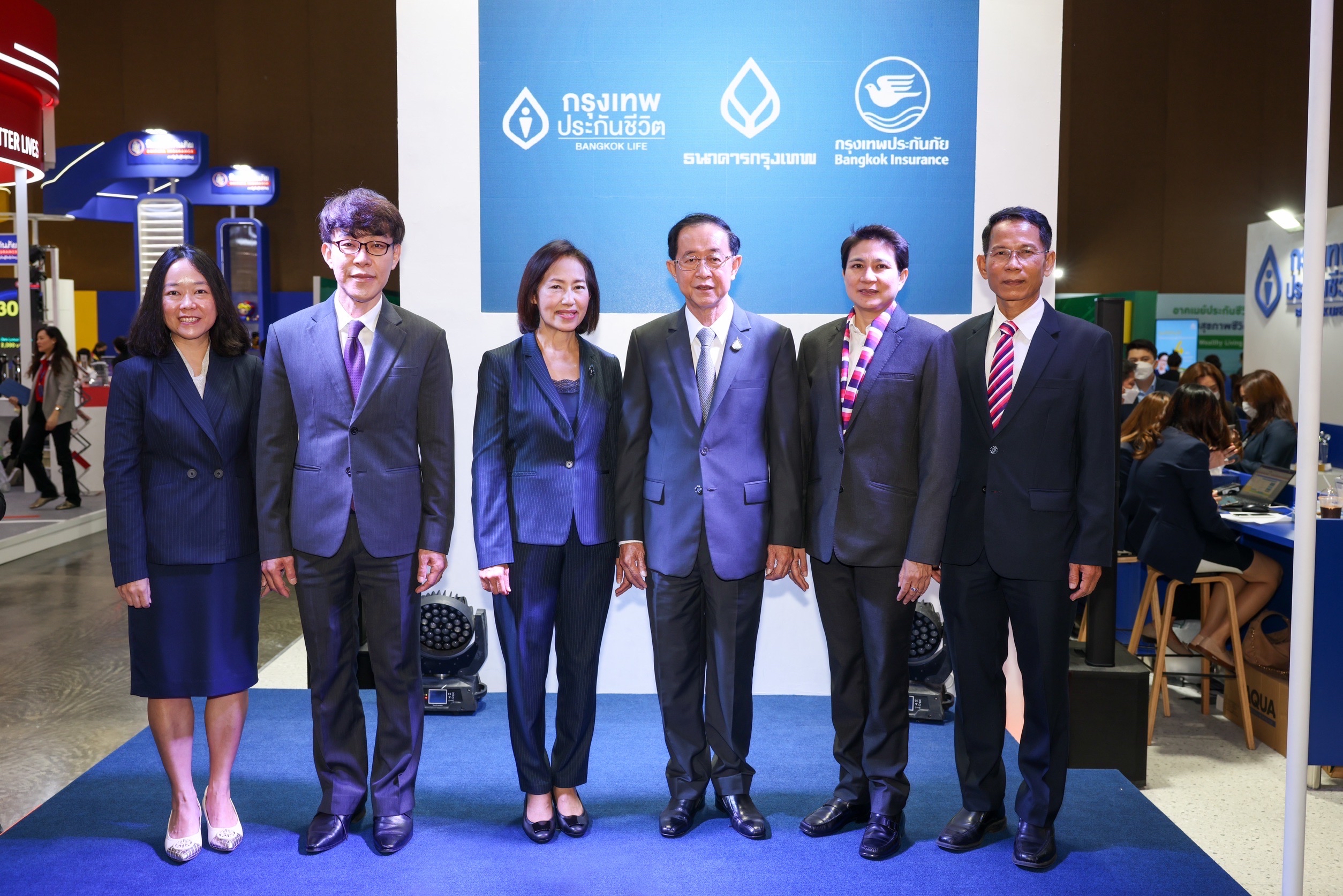 โดยได้รับเกียรติจาก นายอาคม เติมพิทยาไพสิฐ (ที่ 3 จากขวา) รัฐมนตรีว่าการกระทรวงการคลัง นางสาววสุมดี วสีนนท์ (ที่ 2 จากขวา) รองเลขาธิการ ด้านตรวจสอบ สำนักงานคณะกรรมการกำกับและส่งเสริมการประกอบธุรกิจประกันภัย (คปภ.) นายชัยยุทธ มังศรี (ขวาสุด) รองเลขาธิการ ด้านกฎหมายคดีและคุ้มครองสิทธิประโยชน์ สำนักงานคณะกรรมการกำกับและส่งเสริมการประกอบธุรกิจประกันภัย(คปภ.) เป็นประธานในพิธีเปิดบูทอย่างเป็นทางการ ซึ่งดร.อภิสิทธิ์ อนันตนาถรัตน (ที่ 2 จากซ้าย) ประธานคณะผู้บริหารและกรรมการผู้อำนวยการใหญ่ บริษัท กรุงเทพประกันภัย จำกัด (มหาชน) นางสาวพจณี คงคาลัย (ที่ 3จากซ้าย) ผู้ช่วยผู้จัดการใหญ่ สายลูกค้าบุคคล ธนาคารกรุงเทพ จำกัด (มหาชน) และนางสาวจารุวรรณ ลิ้มคุณธรรมโม (ซ้ายสุด) ผู้บริหารสายบัญชีและการเงิน บริษัท กรุงเทพประกันชีวิต จำกัด(มหาชน) ให้การต้อนรับและร่วมในพิธีเปิดบูทดังกล่าว