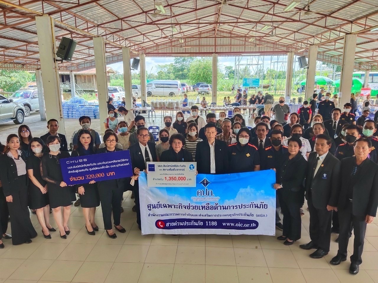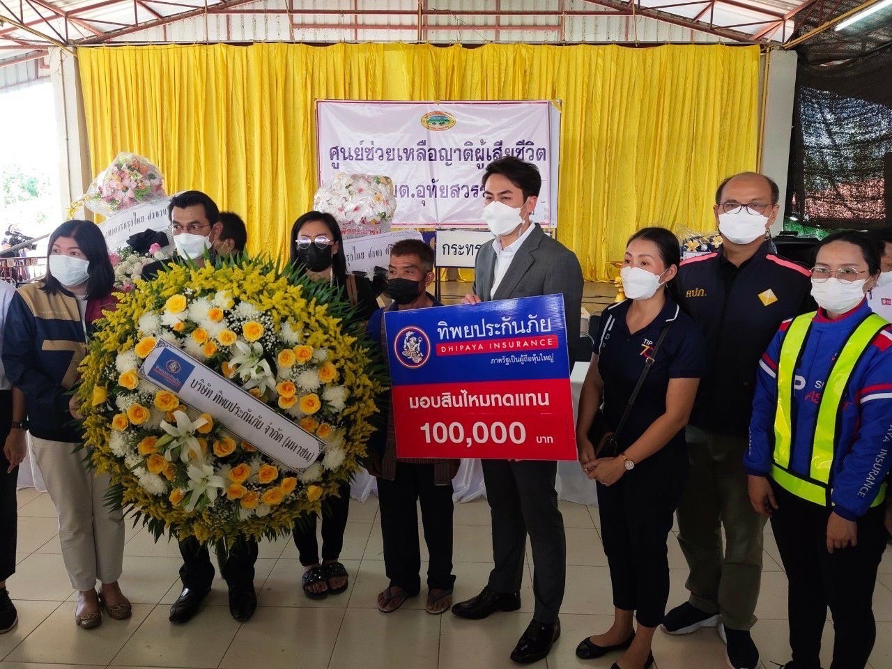 โดยมีผู้เสียชีวิตที่ได้รับความคุ้มครองตามเงื่อนไขกรมธรรม์ จำนวน 17 ราย รายละ 50,000 บาท ผู้บาดเจ็บที่ได้รับความคุ้มครองตามเงื่อนไขกรมธรรม์ 3 ราย ๆ ละ 5,000 บาท ซึ่งจากการประสานงาน บริษัทผู้รับประกันภัยได้นัดจ่ายค่าสินไหมทดแทนให้แก่ทายาทผู้เสียชีวิต ในวันที่ 8 ตุลาคม 2565 เวลา 14.00 น. ณ หอประชุมองค์การบริหารส่วนตำบลอุทัยสวรรค์ อำเภอนากลาง จังหวัดหนองบัวลำภู