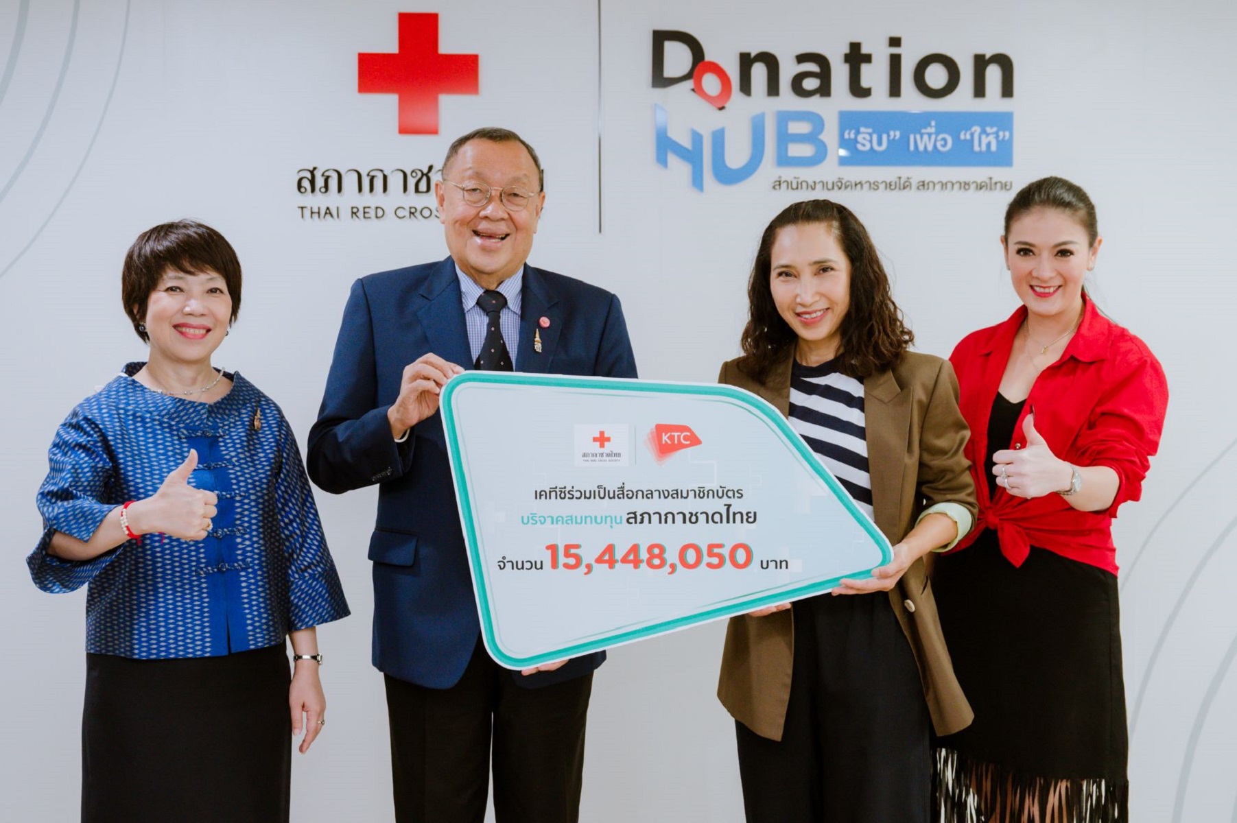10 ตุลาคม 2565 : สิรีรัตน์ คอวนิช (กลางขวา) ผู้อำนวยการ – การตลาดบัตรเครดิต “เคทีซี” หรือ บริษัท บัตรกรุงไทย จำกัด (มหาชน) เป็นตัวแทนมอบเงินจำนวน 15,448,050 บาท ให้กับ ขรรค์ ประจวบเหมาะ (กลางซ้าย) ผู้อำนวยการ สำนักงานจัดหารายได้ สภากาชาดไทย พร้อมด้วย จันทร์ประภา วิชิตชลชัย (ซ้าย) รองผู้อำนวยการฯ ซึ่งสมาชิกบัตรเครดิตเคทีซีมีจิตศรัทธาร่วมกันบริจาคผ่านการตัดบัตรเครดิตและใช้คะแนน KTC FOREVER ทุกๆ 1,000 คะแนน เปลี่ยนเป็นเงินบริจาค 100 บาท สมทบทุนสภากาชาดไทย เพื่อช่วยเหลือผู้เดือดร้อนและประโยชน์สุขของประชาชน ณ สำนักงานจัดหารายได้ Donation HUB “รับ” เพื่อ “ให้” ถนนอังรีดูนังค์ เมื่อเร็วๆ นี้