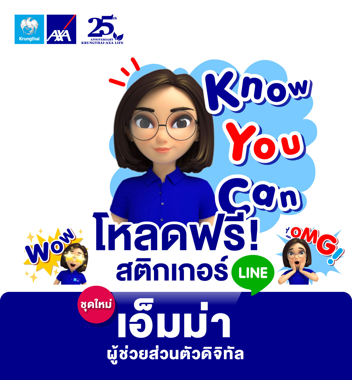 11 ตุลาคม 2565 : บมจ.กรุงไทย-แอกซ่า ประกันชีวิต ผู้นำธุรกิจประกันชีวิตและสุขภาพ โดย คุณบุปผาวดี โอวรารินท์ ประธานเจ้าหน้าที่บริหาร ฝ่ายทรัพยากรบุคคลและภาพลักษณ์องค์กรและการสื่อสารองค์กร เปิดตัวไลน์สติ๊กเกอร์ชุดพิเศษ “Emma by AXA” ซึ่งเป็นส่วนหนึ่งจากแคมเปญโฆษณาออนไลน์ “เชื่อในสิ่งที่ใช่กับ Emma” พร้อมนำเสนอ Emma by AXA ผู้ช่วยส่วนตัวดิจิทัลที่เป็นผู้รู้จริง และสามารถให้คำแนะนำที่ถูกต้องแก่ทุกคน ทั้งเรื่องสุขภาพ การลงทุน และประกันชีวิต ทุกที่ ทุกเวลา