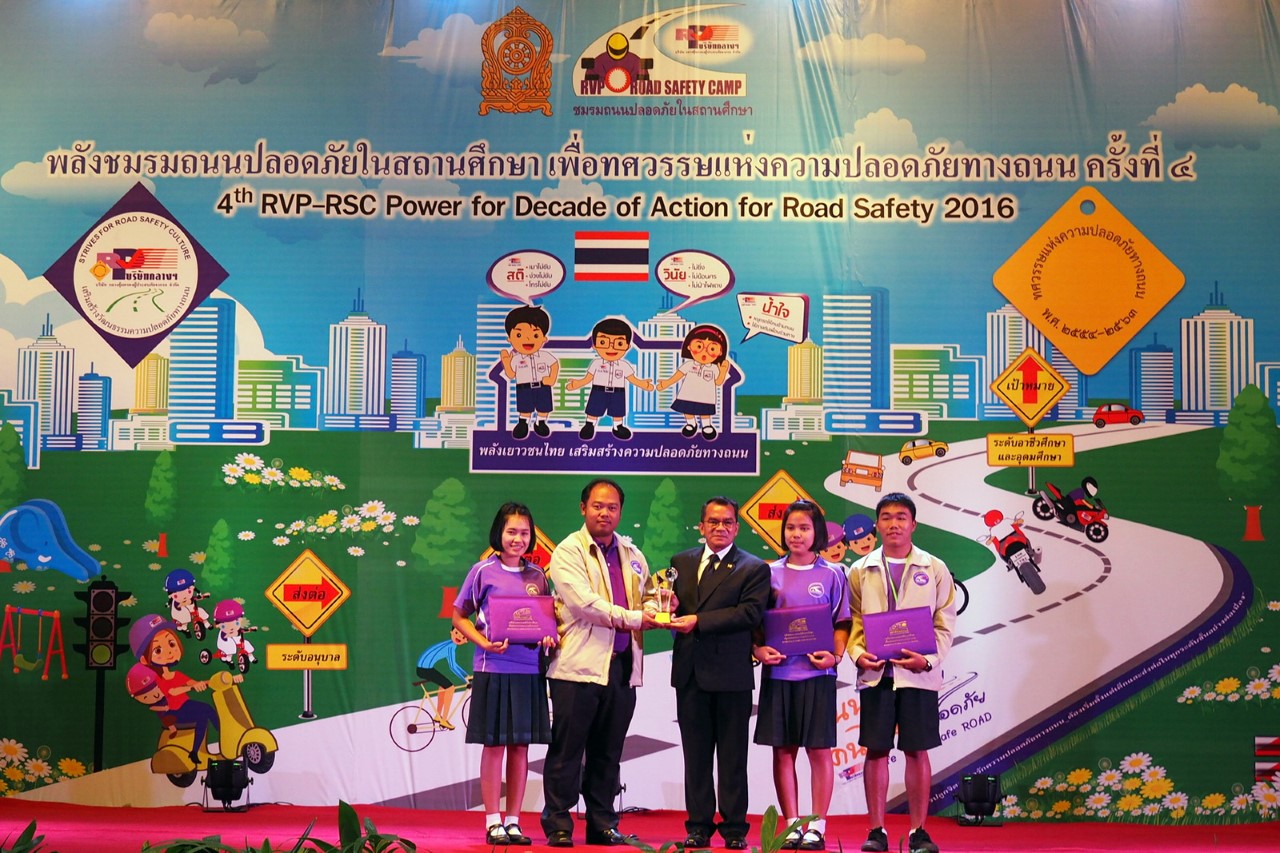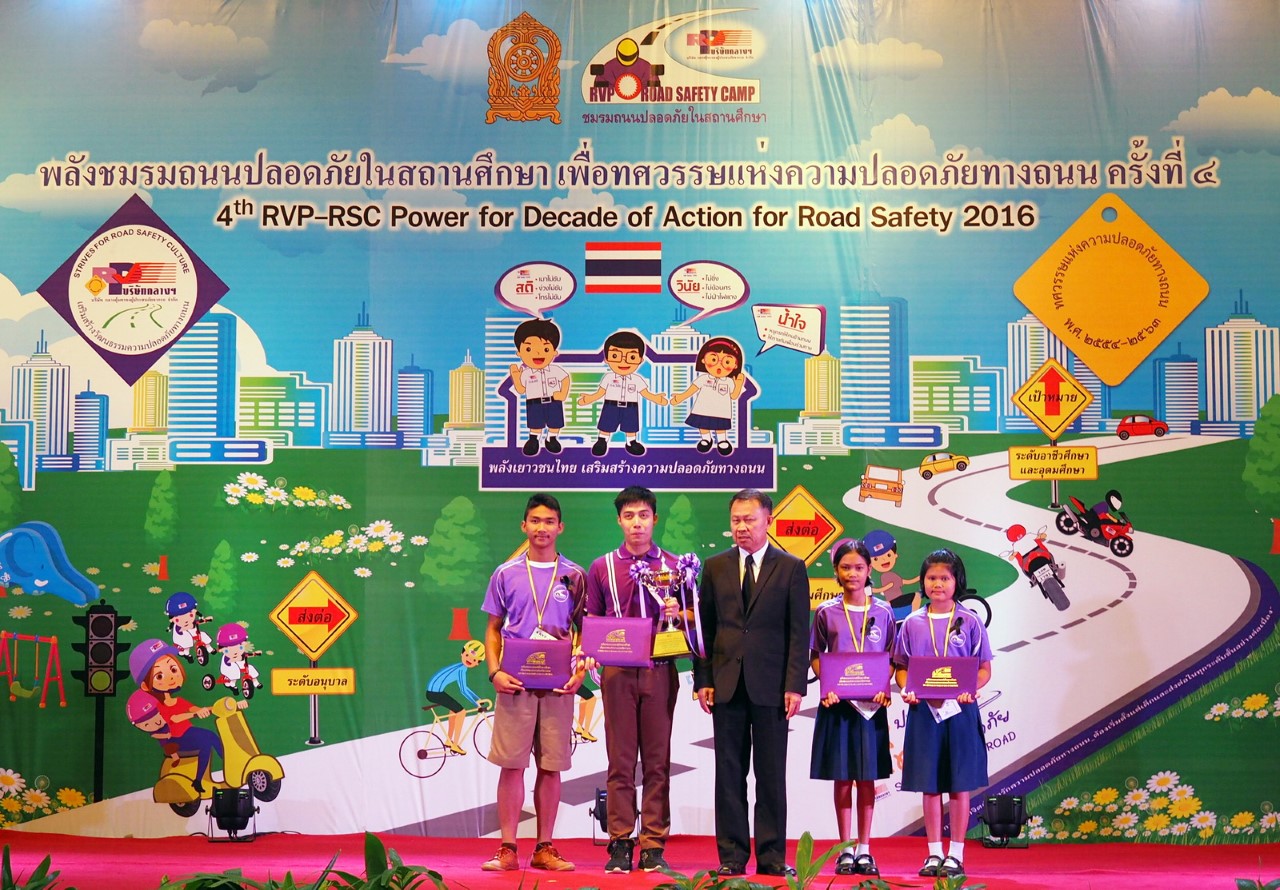 ซึ่งจัดโดยบริษัท กลางคุ้มครองผู้ประสบภัยจากรถ จำกัด เพื่อเปิดโอกาสให้นักเรียน นักศึกษาชมรมถนนปลอดภัยในสถานศึกษาจากทั่วประเทศ ได้นำผลงานด้านวิชาการรวมถึงกิจกรรมที่ได้ดำเนินการด้านความปลอดภัยทางถนนมานำเสนอเพื่อให้เกิดการแลกเปลี่ยนเรียนรู้ระหว่างกัน เพื่อส่งเสริมให้เยาวชนมีจิตสำนึกรักความปลอดภัยทางถนน ซึ่งเป็นส่วนสำคัญในการลดอุบัติเหตุจากการใช้รถใช้ถนนในสถานศึกษา ณ ณ โรงแรมรามาการ์เด้นท์ กรุงเทพมหานคร ![]()