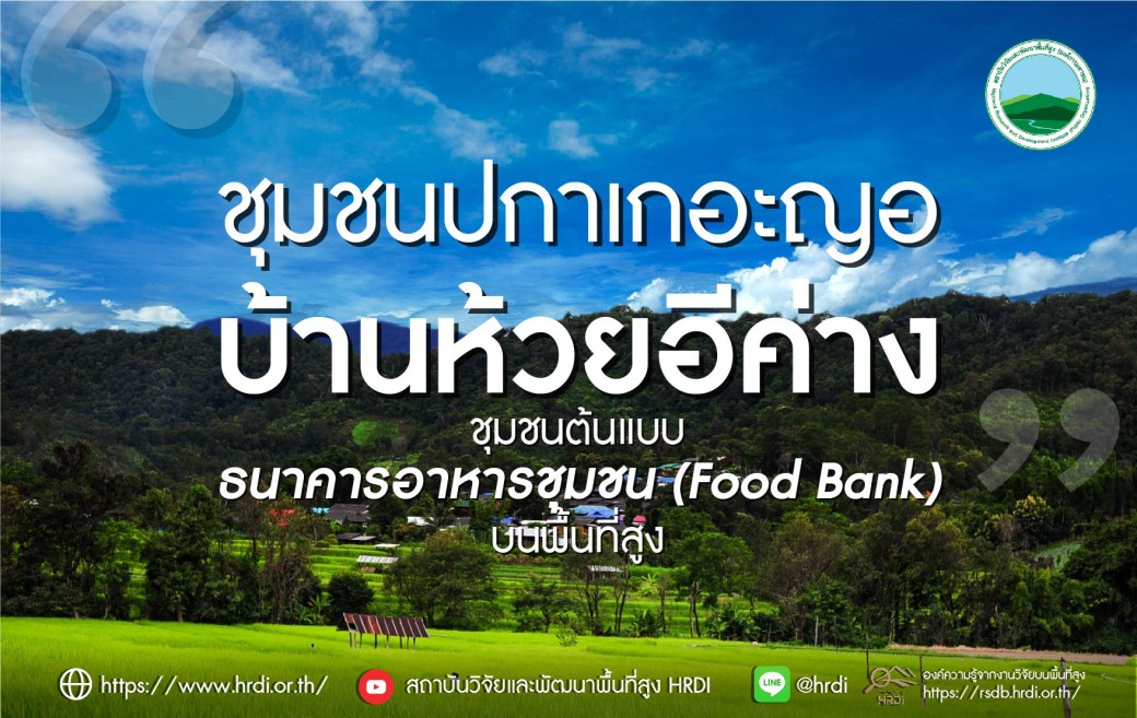 ดร.จารุณี ภิลุมวงค์ นักวิจัย สถาบันวิจัยและพัฒนาพื้นที่สูง (สวพส.) กล่าวว่า สำหรับปัจจัยสำคัญที่ทำให้ชุมชนบ้านห้วยอีค่าง เป็นชุมชนต้นแบบ Food Bank ที่มีการอนุรักษ์ ฟื้นฟูพืชท้องถิ่นและมีการจัดการทรัพยากรธรรมชาติเพื่อการใช้ประโยชน์อย่างยั่งยืน มีดังนี้