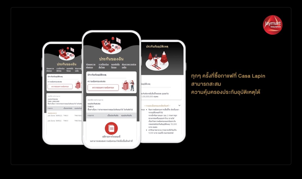 คอกาแฟสามารถแลกรับประกันอุบัติเหตุส่วนบุคคลความคุ้มครองทุนประกันภัยครั้งละ 50,000 บาท สำหรับกาแฟทุกแก้วที่ซื้อจาก Casa Lapin ภายใต้เงื่อนไขที่กำหนด