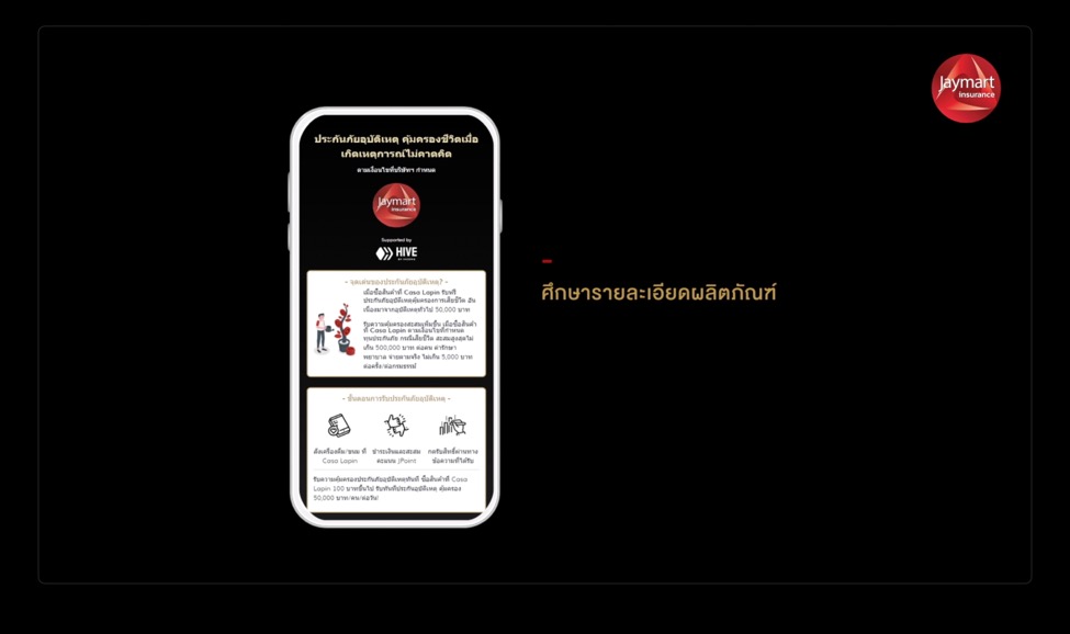 ในขณะเดียวกันลูกค้าจะสะสมความคุ้มครองและปรับเปลี่ยนได้อย่างยืดหยุ่น ซึ่งสอดคล้องกับพฤติกรรมของผู้บริโภคในปัจจุบันที่ต้องการออกแบบและควบคุมการซื้อประกันได้ด้วยตนเอง เราจึงรู้สึกยินดีเป็นอย่างยิ่ง ที่เจอเจมาร์ท ประกันภัย J Point และ Casa Lapin ซึ่งเป็นพาร์ทเนอร์ที่มีวิสัยทัศน์ตรงกันในการสร้างโอกาสให้คนไทยเข้าถึงประกันภัยมากขึ้นผ่านเทคโนโลยีและนวัตกรรม”