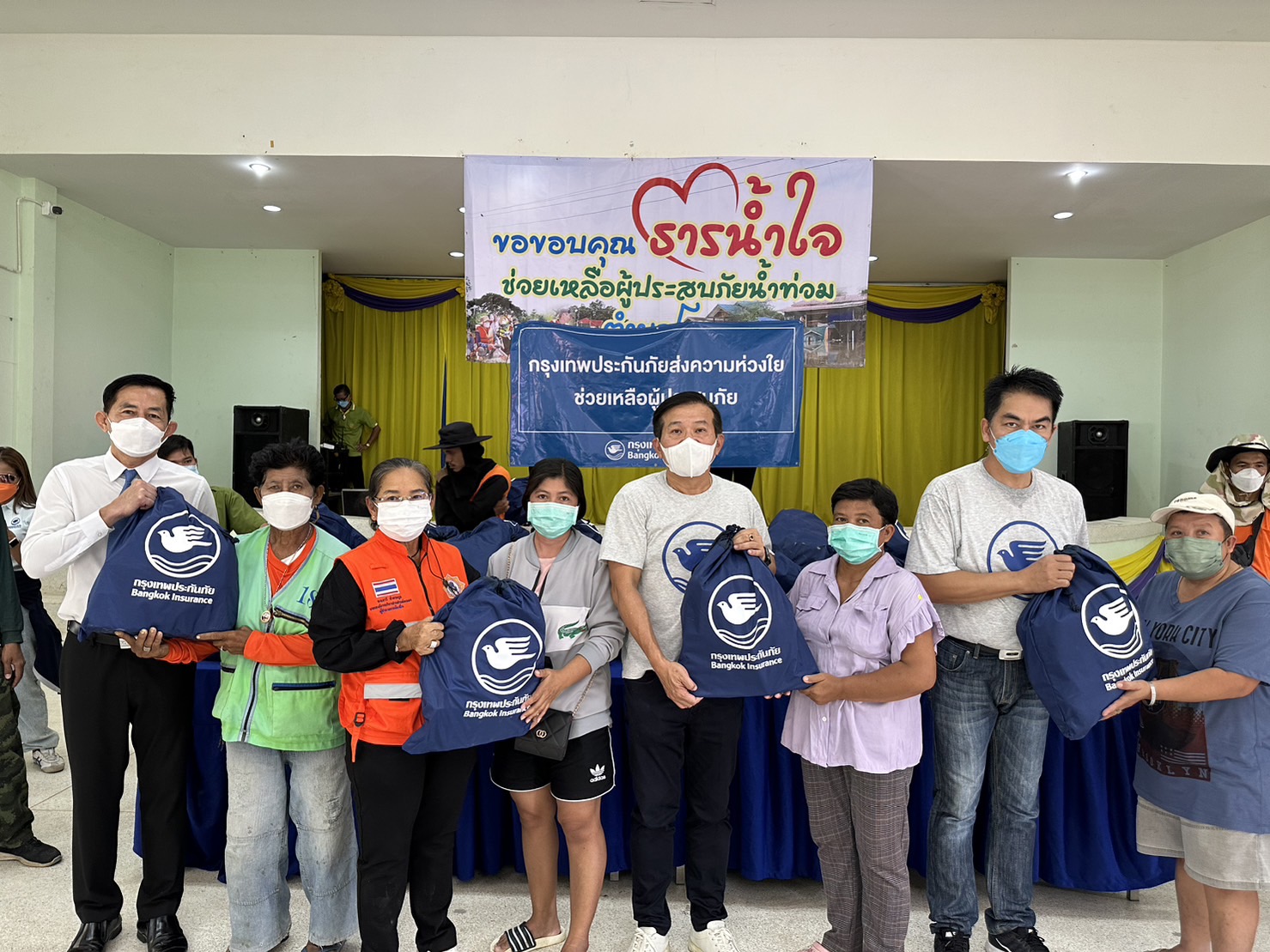 31 ตุลาคม 2565 : บริษัท กรุงเทพประกันภัย จำกัด (มหาชน) หรือ BKI ร่วมกับมูลนิธิกรุงเทพประกันภัย เดินหน้าส่งความช่วยเหลือให้ผู้ประสบอุทกภัยอย่างต่อเนื่อง นำโดย ธีรยุทธ กิจวรพัฒน์ ผู้อำนวยการ ธุรกิจสาขาและการร่วมทุนและผู้บริหารจากธนาคารกรุงเทพ จำกัด (มหาชน) นำพนักงานจิตอาสาลงพื้นที่มอบถุงยังชีพซึ่งบรรจุข้าวสารอาหารแห้ง ของใช้ในชีวิตประจำวันที่จำเป็น จำนวน 300 ชุด และน้ำดื่ม 3,600 ขวด ให้แก่พี่น้องประชาชนที่ได้รับผลกระทบจากอุทกภัย เพื่อบรรเทาความเดือดร้อนอย่างเร่งด่วน ณ องค์การบริหารส่วนตำบลโผงเผง อำเภอป่าโมก จังหวัดอ่างทอง เมื่อวันที่ 26 ตุลาคม 2565