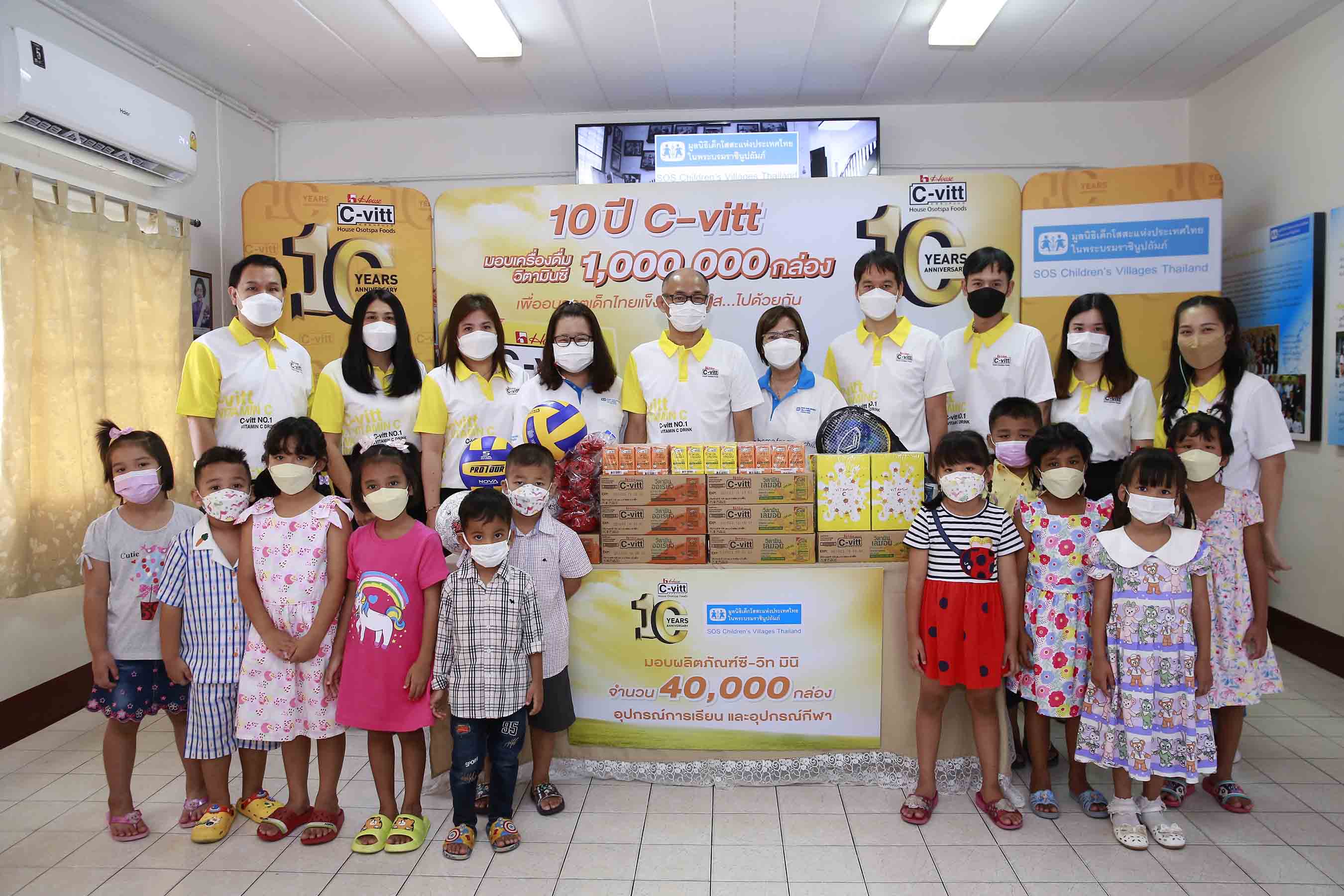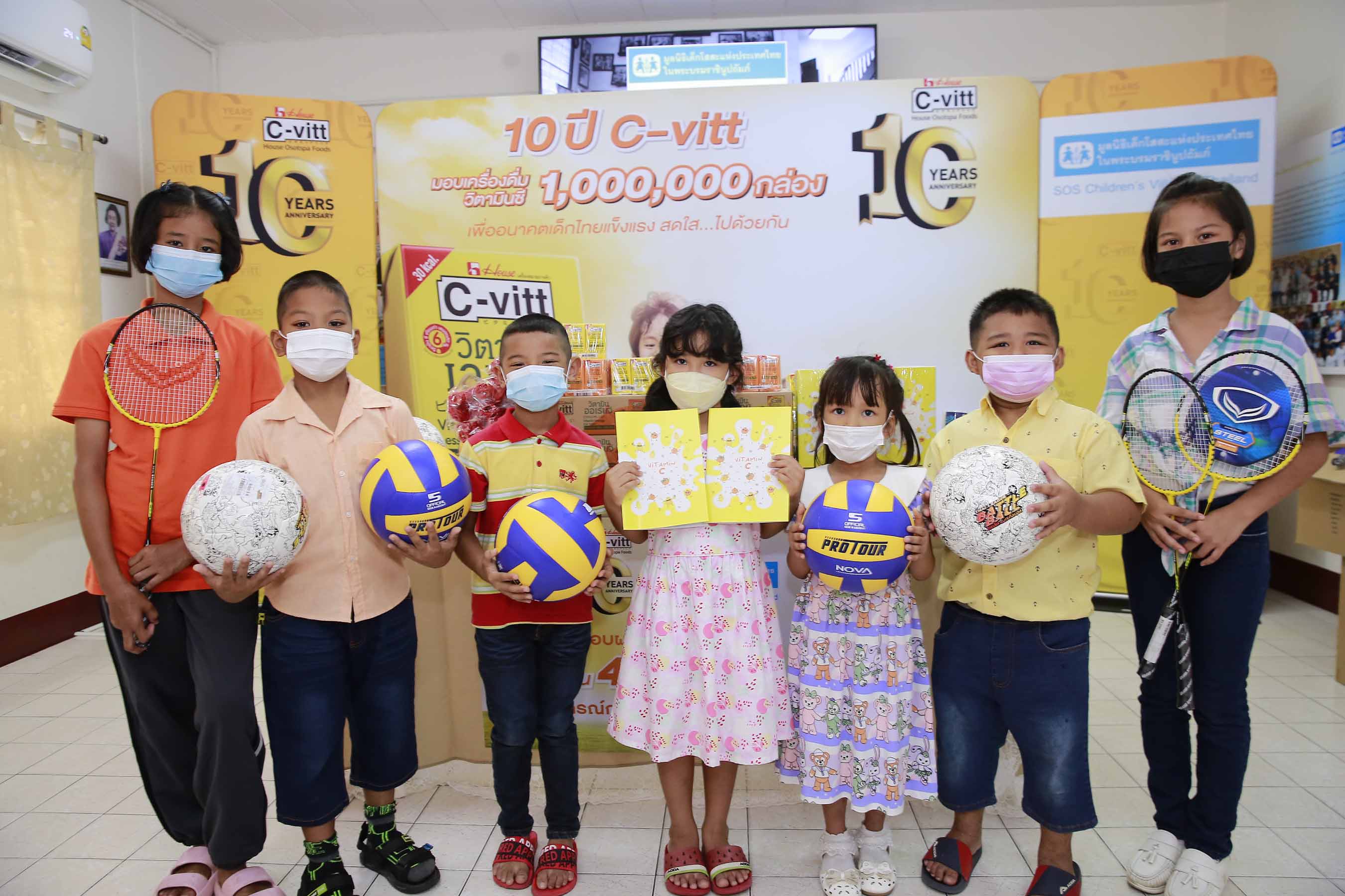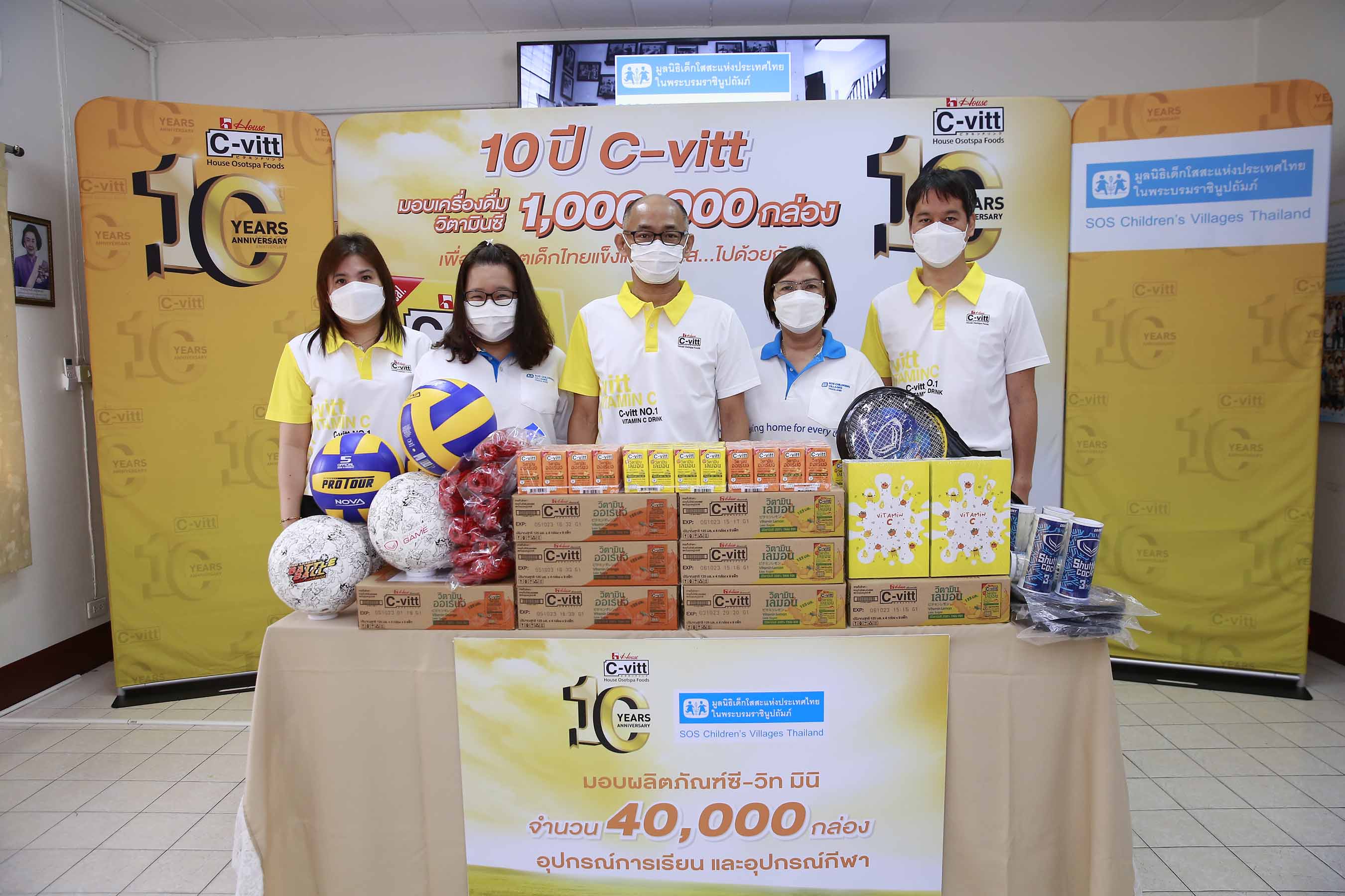 ภายในงานโดยได้รับเกียรติจาก มร. โอซามุ โซมะ ประธานบริหาร บริษัท เฮ้าส์ โอสถสภา ฟู้ดส์ จำกัด นำทีมผู้บริหารและพนักงาน มอบซี-วิท มินิ จำนวน 40,000 กล่อง พร้อมอุปกรณ์การเรียนการสอนและอุปกรณ์กีฬา ให้แก่น้องๆ เยาวชน ในการดูแลของมูลนิธิเด็กโสสะแห่งประเทศไทยฯ ครอบคลุมทั่วประเทศไทย อันประกอบไปด้วย หมู่บ้านเด็กโสสะบางปู สมุทรปราการ, หมู่บ้านเด็กโสสะหาดใหญ่ สงขลา, หมู่บ้านเด็กโสสะ “เฉลิมนารินทร์” หนองคาย, หมู่บ้านเด็กโสสะ “สิริเมตตา ๗๒ พรรษา เฉลิมพระเกียรติ” เชียงราย และ “หมู่บ้านเด็กโสสะภูเก็ต เฉลิมพระเกียรติ ๘๐ พรรษา ๕ ธันวาคม ๒๕๕๐”