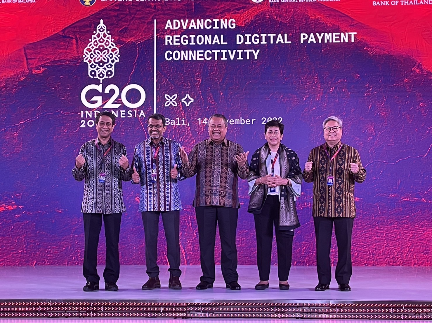 โดยธนาคารกลางทั้ง 5 แห่ง ได้ลงนามบันทึกความเข้าใจ (MOU) ว่าด้วยความร่วมมือด้านการเชื่อมโยงระบบการชำระเงินในภูมิภาค ที่เมืองบาหลี ประเทศอินโดนีเซีย ในช่วงการประชุมผู้นำกลุ่มประเทศ G20 โดยมี ฯพณฯ นาย Joko Widodo ประธานาธิบดีอินโดนีเซีย ร่วมกล่าวเปิดงานซึ่งได้เน้นย้ำถึงความสำคัญของความร่วมมือระหว่างประเทศ เพื่อแก้ปัญหาที่ทั่วโลกเผชิญร่วมกัน และชื่นชมธนาคารกลางทั้ง 5 แห่ง ที่แสดงความมุ่งมั่นในการผลักดันนวัตกรรมใหม่ ๆ ที่จะเร่งการเชื่อมโยงระบบการชำระเงินในภูมิภาค