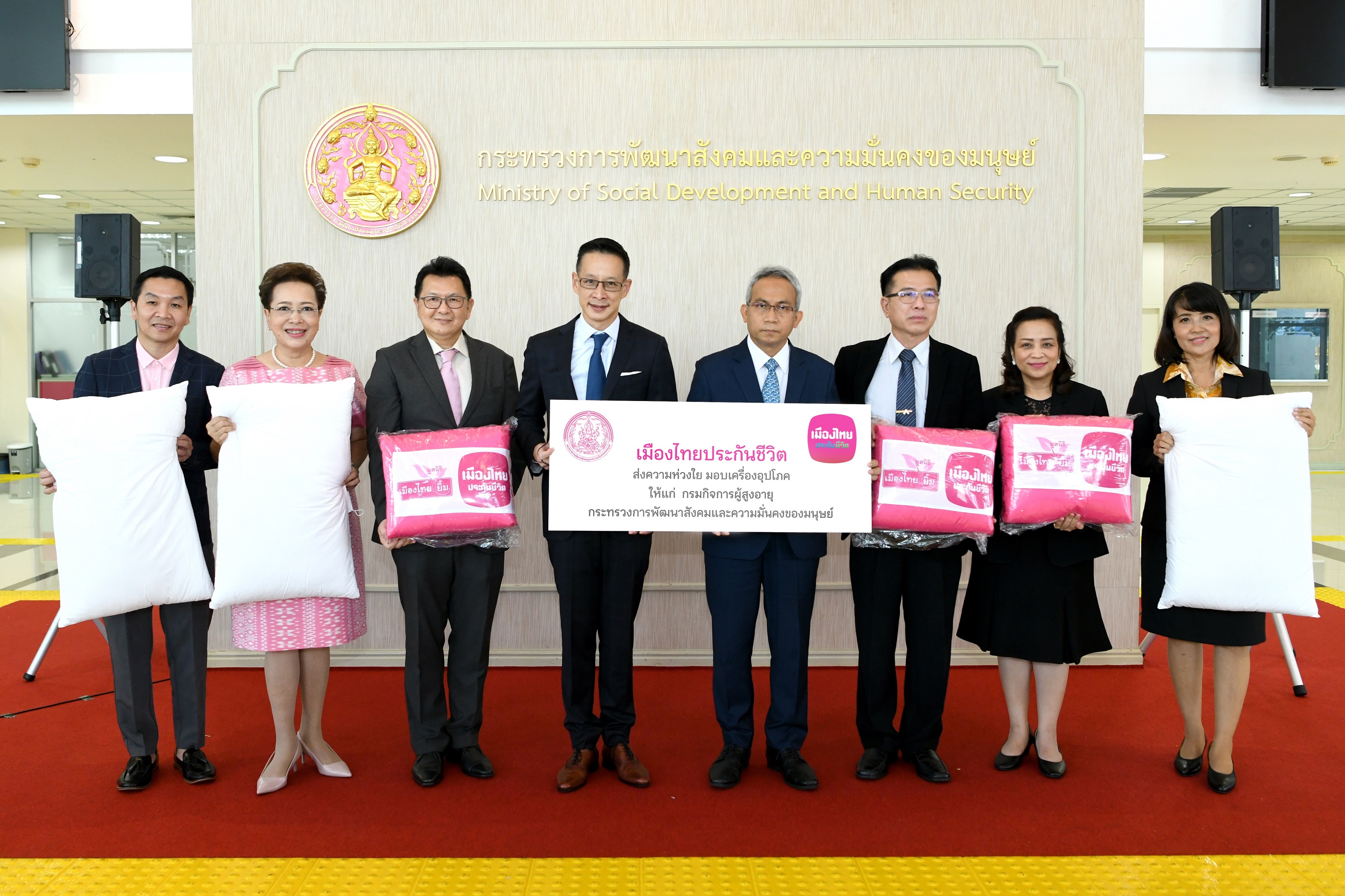 21 พฤศจิกายน 2565 : สาระ ล่ำซำ ประธานเจ้าหน้าที่บริหาร พร้อมด้วย ปราโมทย์ ศักดิ์กำจร รองกรรมการผู้จัดการอาวุโส, พิตราภรณ์ บุณยรัตพันธุ์ รองกรรมการผู้จัดการอาวุโส และ รัชดา พุ่มสุวรรณ รองกรรมการผู้จัดการ บริษัท เมืองไทยประกันชีวิต จำกัด (มหาชน) ร่วมมอบเครื่องอุปโภคให้แก่กระทรวงการพัฒนาสังคมและความมั่นคงของมนุษย์ โดยมีผ้าห่มจำนวน 400 ผืน หมอนจำนวน 362 ใบ รวมมูลค่า 168,870 บาท เพื่อนำไปมอบให้แก่ผู้สูงอายุที่ขาดแคลน และกลุ่มประชาชนเปราะบางทางสังคม ให้มีคุณภาพชีวิตที่ดีขึ้น