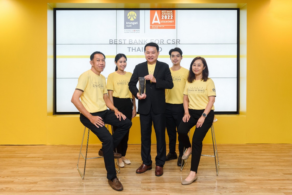 23 พฤศจิกายน 2565 : กรุงศรี (ธนาคารกรุงศรีอยุธยา จำกัด (มหาชน)) โดย พูนสิทธิ์ ว่องธวัชชัย (กลาง) ผู้ช่วยกรรมการผู้จัดการใหญ่ ผู้บริหารสายงานการพัฒนาด้านสิ่งแวดล้อม สังคม และธรรมาภิบาลสู่ความยั่งยืน รับรางวัล Best Bank for CSR, Thailand จากงาน Asiamoney Best Bank Awards 2022 จัดโดย Asiamoney นิตยสารการเงินชั้นนำ โดยกรุงศรีได้รับรางวัลอันทรงคุณค่านี้ติดต่อกันเป็นปีที่ 3 สะท้อนถึงผลการดำเนินงานด้านความรับผิดชอบต่อสังคมอันโดดเด่น โดยเฉพาะการส่งเสริมความรู้ทางการเงินให้กับเยาวชน ผ่านการพัฒนาสื่อการเรียนการสอนรูปแบบแอนิเมชันออนไลน์โครงการกรุงศรีรอบรู้เรื่องเงิน “เรื่องเงิน เรียนง่าย” ![]()