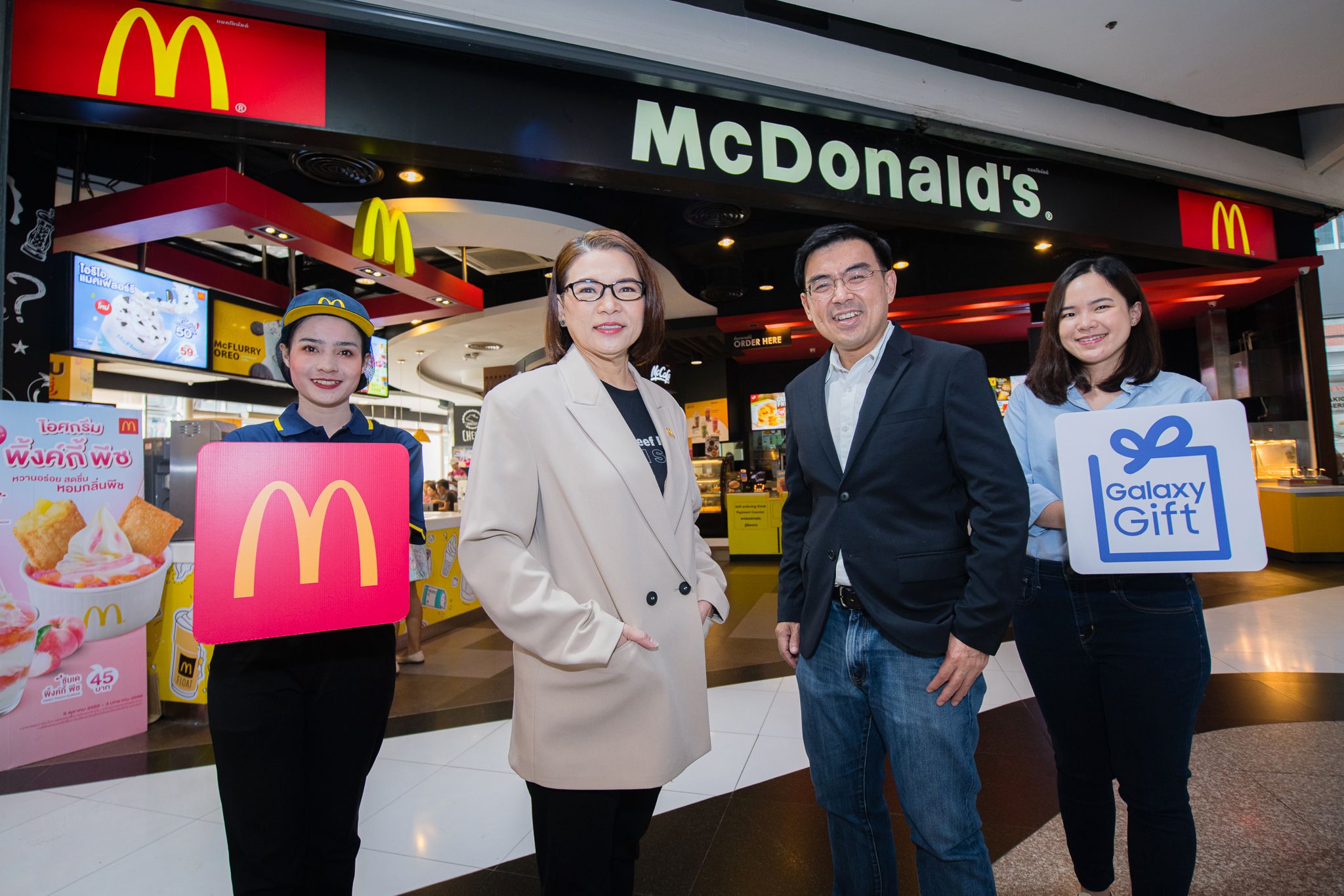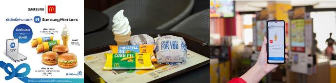 23 พฤศจิกายน 2565 : บริษัท แมคไทย จำกัด ผู้ดำเนินธุรกิจอาหารบริการด่วนภายใต้แบรนด์แมคโดนัลด์ในประเทศไทย ร่วมกับ บริษัท ไทยซัมซุง อิเลคโทรนิคส์ จำกัด หรือ Samsung ตอกย้ำความร่วมมือทางธุรกิจ จับมือมอบสิทธิพิเศษ Galaxy Gift ให้ลูกค้า Samsung Galaxy ผ่านแอปพลิเคชัน Samsung Members ให้ฟินอิ่มอร่อย โดยไม่ต้องใช้คะแนนแลก ด้วยโปรโมชั่นพิเศษกับหลากหลายเมนูอร่อยสุดคุ้ม เลือกอร่อยได้ในทุกสไตล์ ได้ตั้งแต่วันนี้ ถึงวันที่ 30 กันยายน 2566 หรือจนกว่าสิทธิ์จะหมด