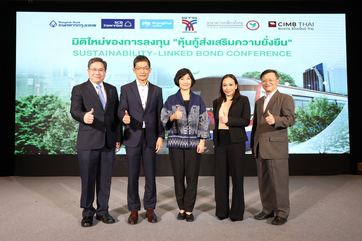 โอกาสนี้ สุรยุทธ ทวีกุลวัฒน์ ผู้อำนวยการใหญ่สายการเงิน (คนที่2จากซ้าย) กมลมาศ นิ่มวัฒนา Group Treasurer บริษัท บีทีเอส กรุ๊ป โฮลดิ้งส์ จำกัด (มหาชน) (คนที่4จากซ้าย) ในฐานะผู้จัดงาน และ นางสาวอริยา ติรณะประกิจ รองกรรมการผู้จัดการ สมาคมตราสารหนี้ไทย (คนที่3จากซ้าย) ร่วมในเวทีเสวนาครั้งนี้ด้วย