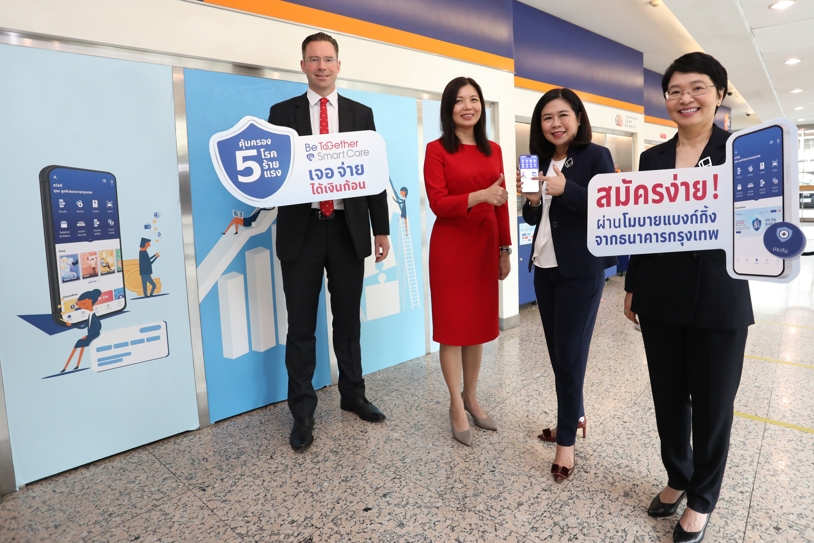 28 พฤศจิกายน 2565 : นางสาวพรพิมล ตรงเที่ยงธรรม ผู้ช่วยผู้จัดการใหญ่ ธนาคารกรุงเทพ จำกัด (มหาชน) เปิดเผยว่า ธนาคารเปิดตัวผลิตภัณฑ์ประกันโรคร้ายแรง Be Together Smart Care ซึ่งเสนอขายผ่านช่องทางโมบายแบงก์กิ้ง จากธนาคารกรุงเทพ โดยมีจุดเด่นที่ให้ความคุ้มครองสูง รับเงินก้อนสูงสุดถึง 1 ล้านบาท เมื่อตรวจพบโรคร้ายแรงยอดฮิต 5 กลุ่มโรค ประกอบด้วย โรคมะเร็งทุกระยะ โรคหลอดเลือดสมองแตกหรืออุดตัน กล้ามเนื้อหัวใจตายเฉียบพลันจากการขาดเลือด ภาวะโคม่า และไตวายเรื้อรัง ขณะเดียวกัน ผู้เอาประกันยังเบาใจเรื่องการขาดรายได้ เพราะแบบประกันจะจ่ายผลประโยชน์ค่าชดเชยรายวัน สำหรับการเข้าพักรักษาเป็นผู้ป่วยในเนื่องจากโรคร้ายแรง สูงสุดถึงวันละ 2,000 บาท รวมสูงสุด 365 วัน ตลอดอายุของกรมธรรม์ (เงื่อนไขความคุ้มครองเป็นตามแผนประกันภัยที่เลือกซื้อ)