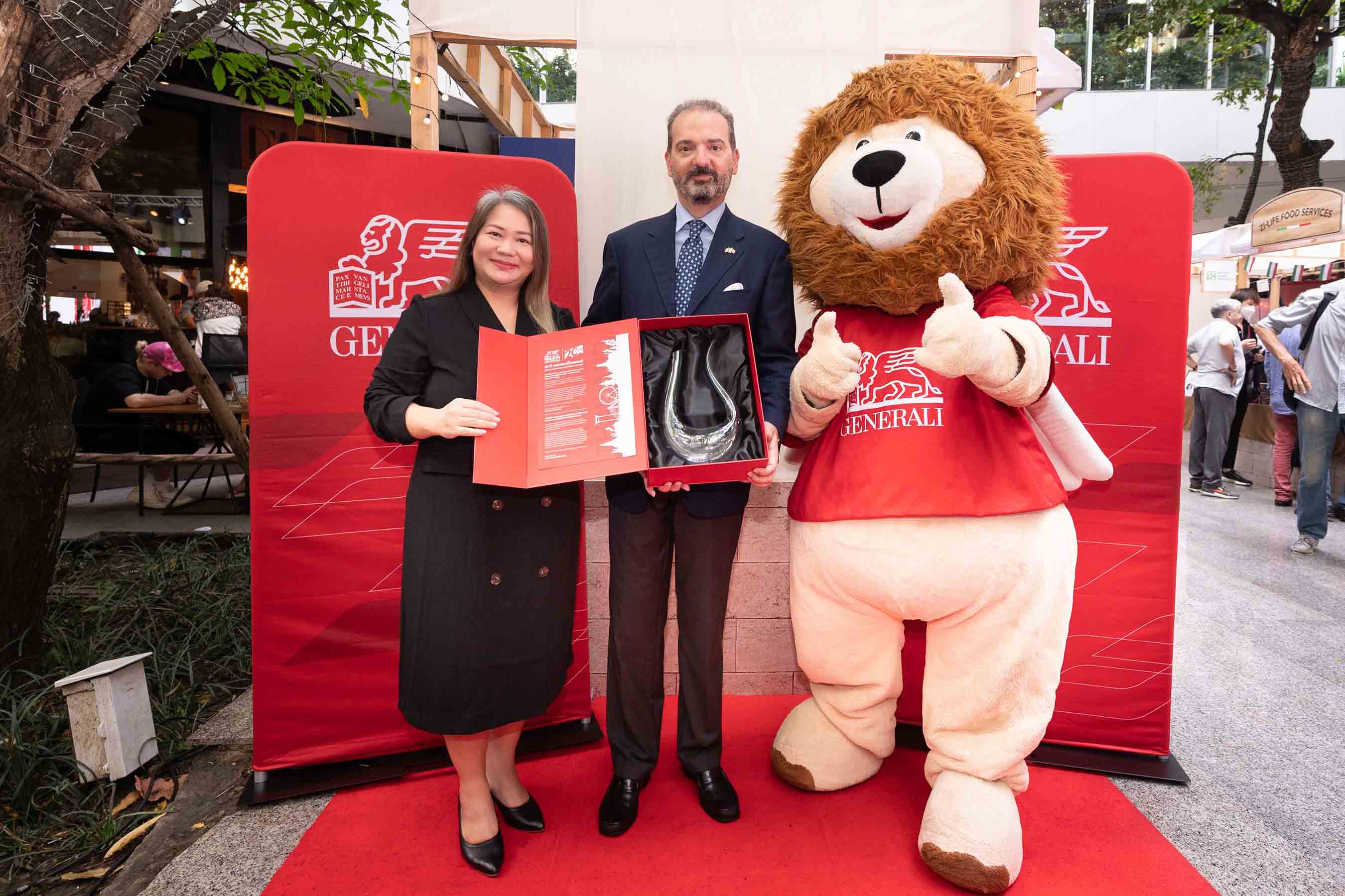 พร้อมกันนี้ เจนเนอราลี่ ไทยแลนด์ ได้ร่วมเป็นหนึ่งในการออกบูธแจกไอศกรีมที่จัดทำขึ้นพิเศษสำหรับมอบให้แก่ผู้เข้าร่วมงาน อีกทั้งยังได้รับเกียรติจาก ช่อฟ้า ยุกตะนันท์ ประธานเจ้าหน้าที่บริหารฝ่ายการตลาดและบริหารลูกค้า กลุ่มบริษัท เจนเนอราลี่ ไทยแลนด์ ร่วมงานพร้อมมอบของที่ระลึกในโอกาสครบรอบ 20 ปี เจนเนอราลี่ ไทยแลนด์ ให้แก่ ฯพณฯ เปาโล ดิโอนิซี (H.E. Mr. Paolo Dionisi) เอกอัครราชทูตอิตาลีประจำประเทศไทย เมื่อเร็ว ๆ นี้ ณ ควอเทียร์ อเวนิว ศูนย์การค้า ดิ เอ็มควอเทียร์