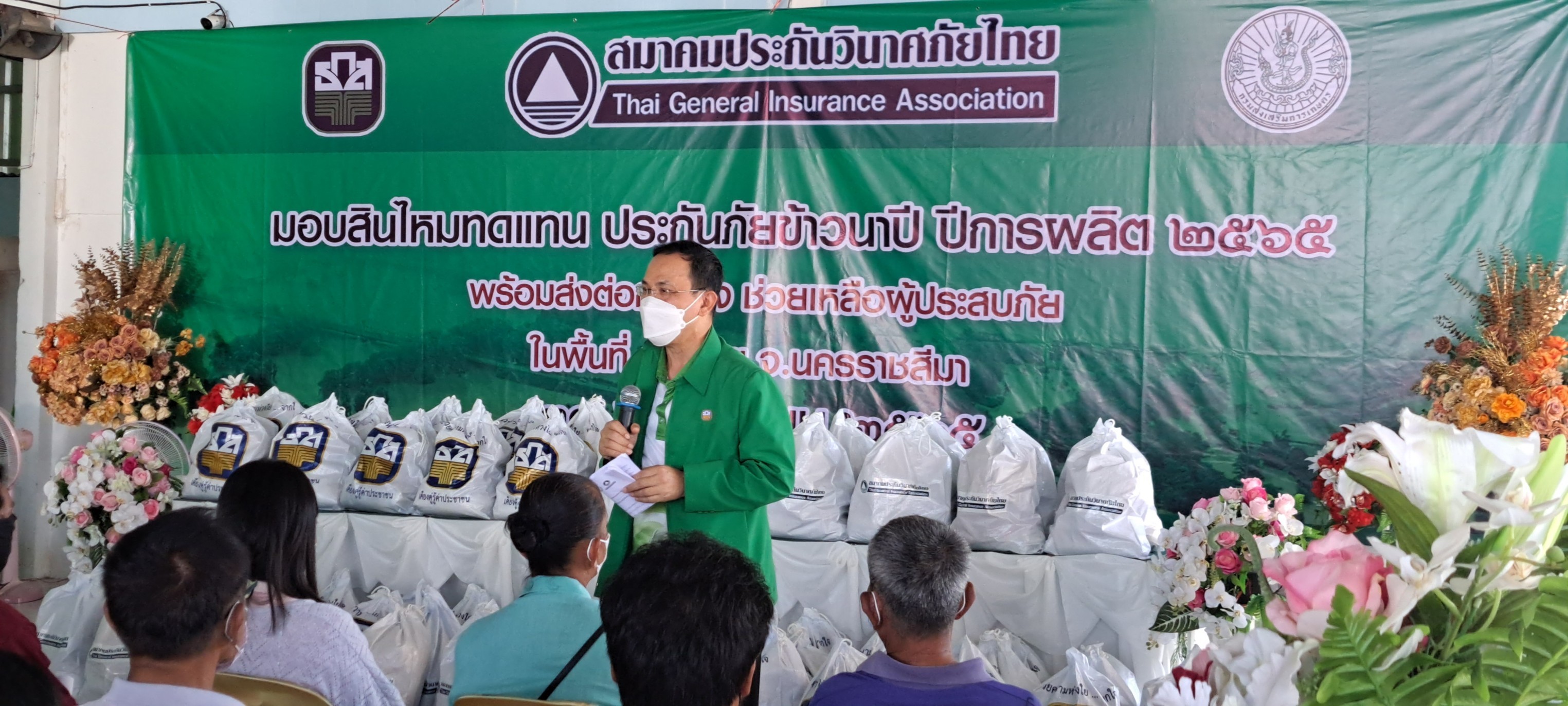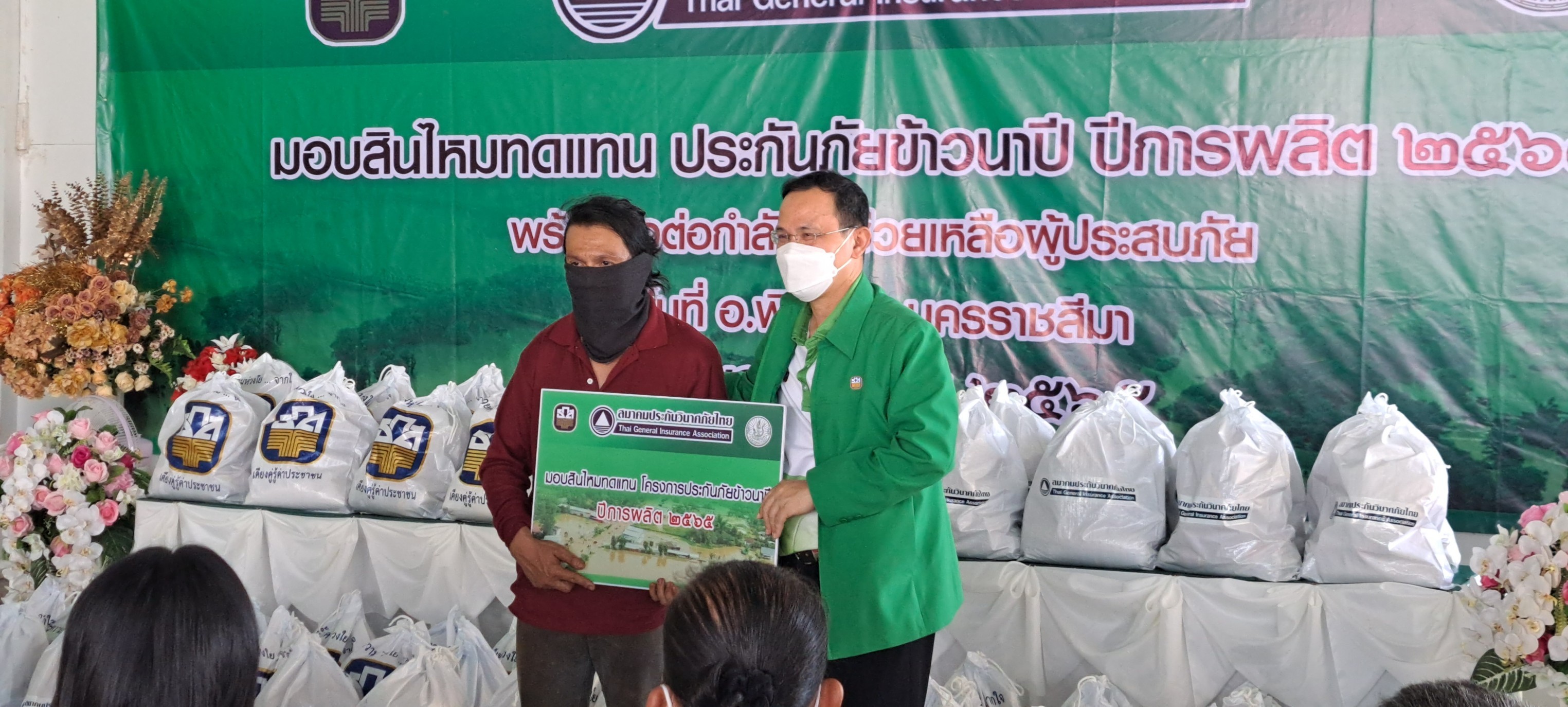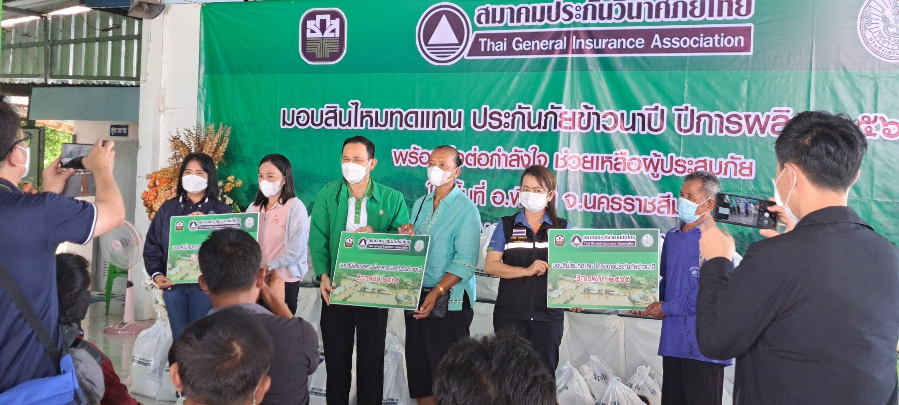 29 พฤศจิกายน 2565 : ศรัทธา อินทรพรหม ผู้ช่วยผู้จัดการธนาคารเพื่อการเกษตรและสหกรณ์การเกษตร (ธ.ก.ส.) และ กัลยา จุกหอมผู้ช่วยผู้อำนวยการบริหารอาวุโส สายงานวิชาการ สมาคมประกันวินาศภัยไทย ร่วมมอบสินไหมทดแทนในโครงการประกันภัยข้าวนาปี ปีการผลิต 2565 และถุงยังชีพให้แก่เกษตรกรผู้เอาประกันภัย เพื่อช่วยบรรเทาความเดือดร้อนจากอุทกภัยที่เกิดขึ้น และเป็นการส่งกำลังใจให้กับผู้ประสบอุทกภัยในพื้นที่อำเภอพิมาย จังหวัดนครราชสีมาให้สามารถผ่านพ้นวิกฤตภัยธรรมชาติไปได้อย่างเข้มแข็ง