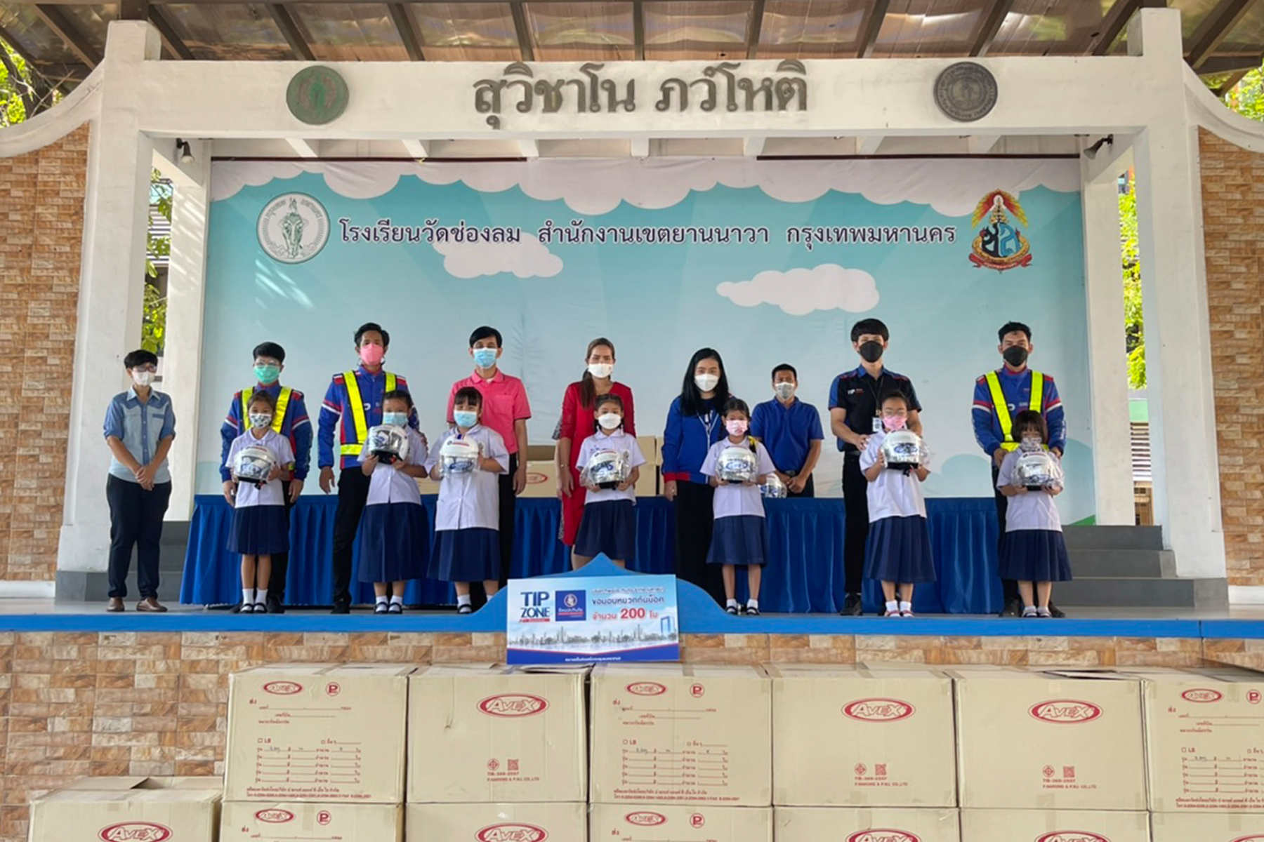1 ธันวาคม 2565 : TIP ZONE By ทิพยประกันภัย มอบหมวกกันน็อคสำหรับนักเรียนโรงเรียนวัดช่องลม จำนวน 200 ใบ ตามโครงการ “TIP ZONE by ทิพยประกันภัย ร่วมสร้างสังคมปลอดภัย” พร้อมทั้งจัดกิจกรรมให้ความรู้เรื่องการสวมหมวกกันน็อคที่ถูกวิธี การซ้อนมอเตอร์ไซค์ที่ถูกต้อง ปลอดภัย และข้อควรระวังขณะซ้อนท้ายมอเตอร์ไซค์ เพื่อเป็นการปลูกฝังให้ตระหนักถึงความปลอดภัย และความเข้าใจในการช่วยป้องกันและลดความรุนแรงจากเการเกิดอุบัติเหตุ โดยมี ทรงกรด แน่นหนา ผู้อำนวยการสถานศึกษาโรงเรียนวัดช่องลม และ นงราม ปรีชาสุชาติ รองผู้อำนวยการสถานศึกษาโรงเรียนวัดช่องลม รับมอบ ณ โรงเรียนวัดช่องลม เขตยานนาวา กรุงเทพฯ