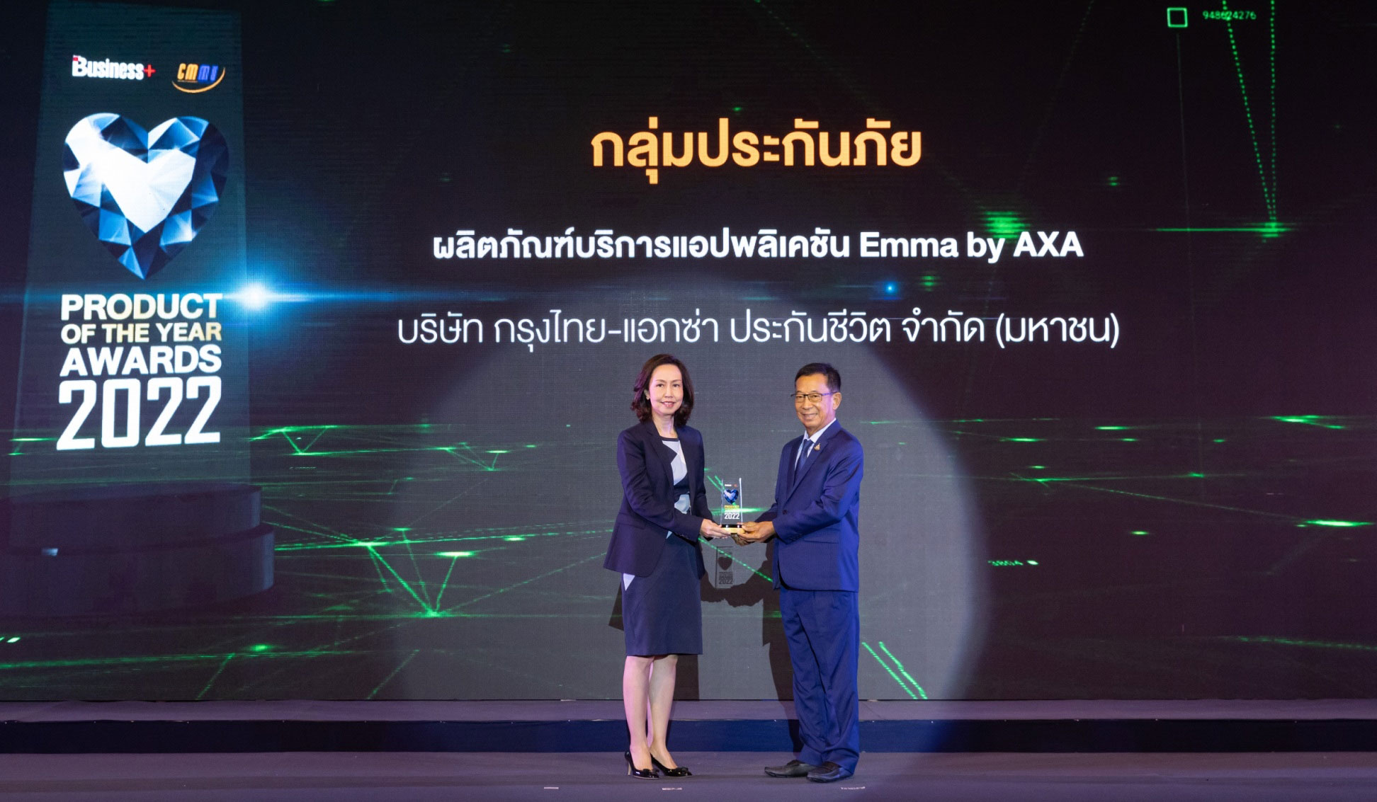 2 ธันวาคม 2565 : ฯพณฯ นุรักษ์ มาประณีต องคมนตรี (คนขวา) เป็นประธานมอบรางวัลสุดยอดสินค้าและบริการแห่งปี “Business+ Product of the Year Awards 2022” โดยมี คุณภควิภา เจริญตรา ประธานเจ้าหน้าที่บริหาร ฝ่ายลูกค้า เป็นตัวแทน บมจ.กรุงไทย-แอกซ่า ประกันชีวิต (คนซ้าย) เข้ารับรางวัลผลิตภัณฑ์และบริการยอดเยี่ยมแห่งปี 2565 ในประเภทสินค้าและบริการกลุ่มประกันภัย จากแอปพลิเคชัน Emma by AXA จากนิตยสาร Business+ ณ ห้องบอลรูม โรงแรมสวิสโฮเต็ล กรุงเทพฯ รัชดา