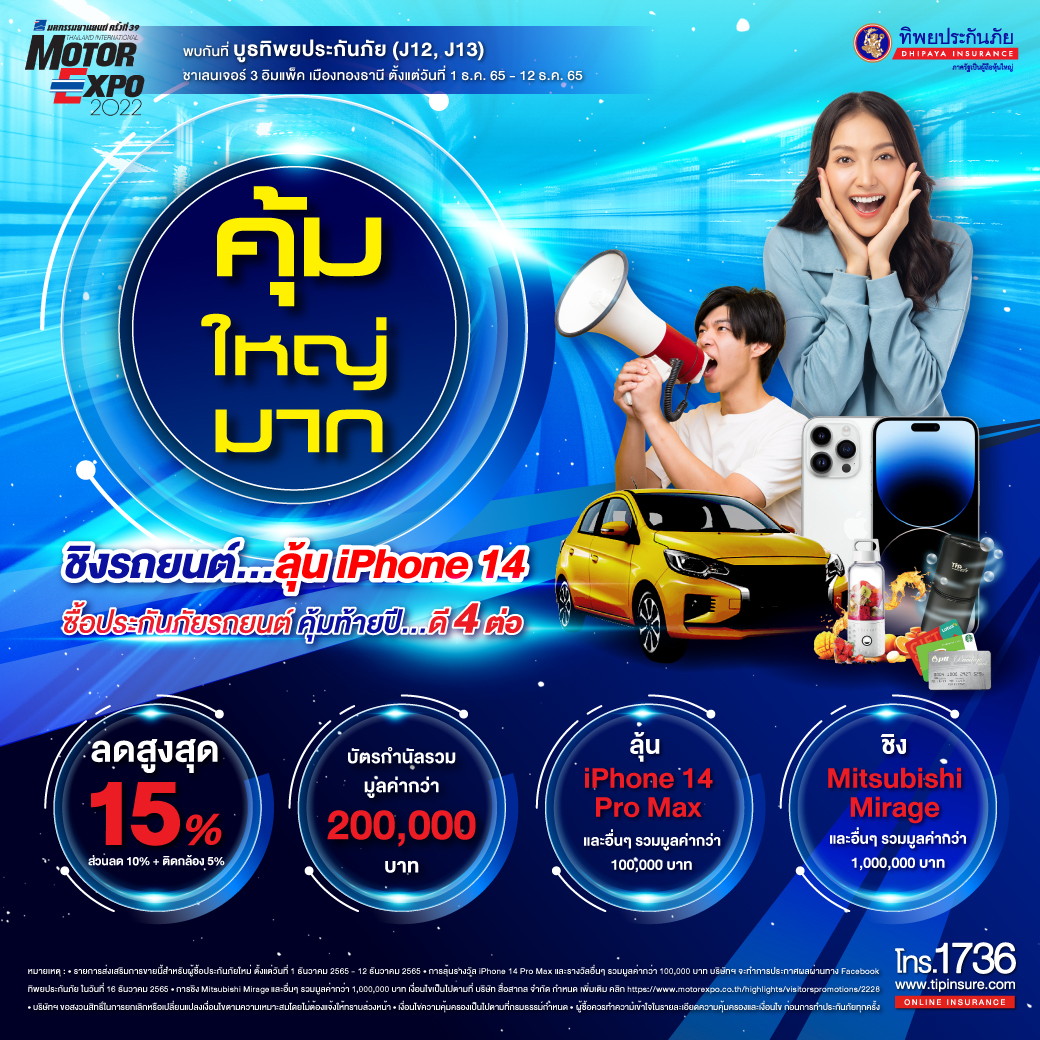 พบกันได้ที่บูธทิพยประกันภัย (J12,J13) ในงาน Motor Expo 2022 ตั้งแต่ 1 ธ.ค. 65 – 12 ธ.ค. 65 ณ ชาเลนเจอร์ 3 อิมแพค เมืองทองธานี