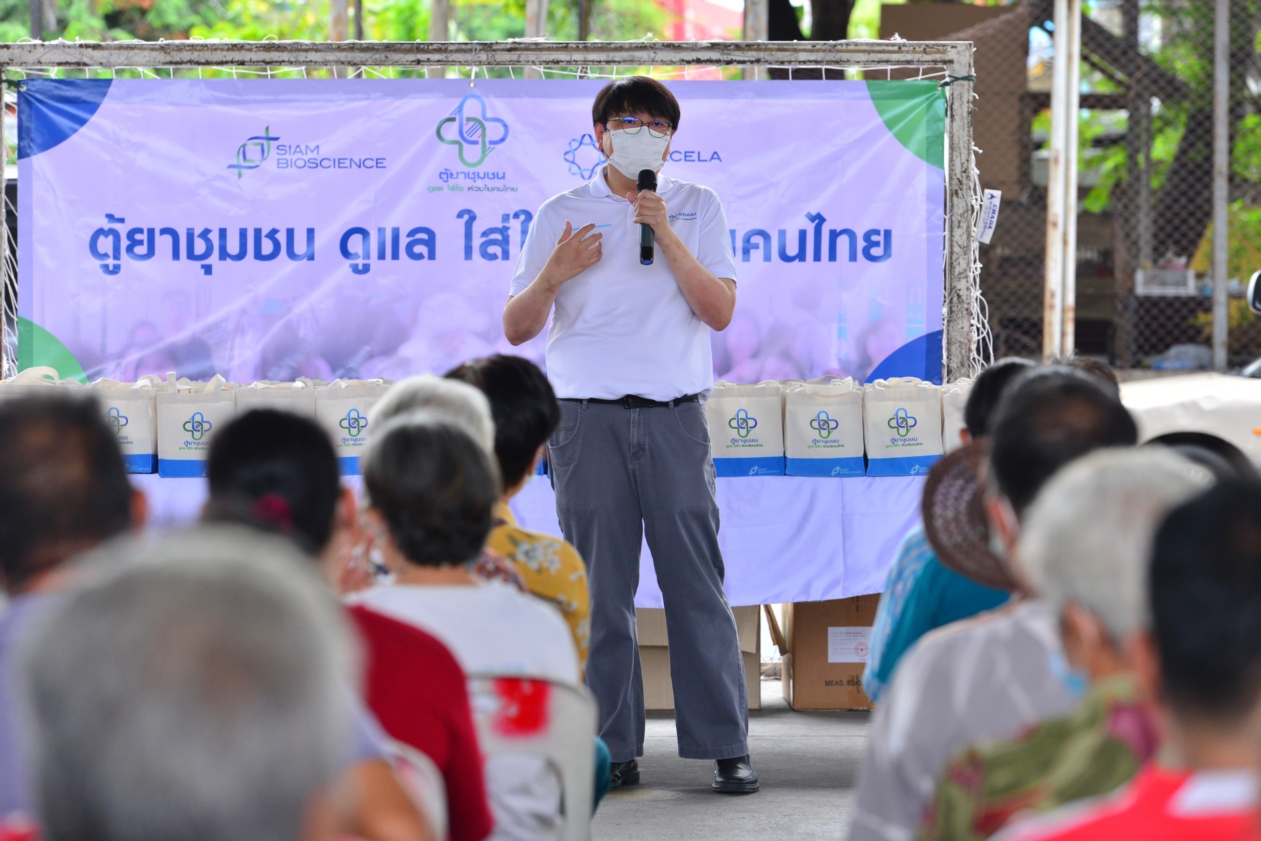 นางนวลพรรณ ล่ำซำ ผู้อำนวยการฝ่ายสื่อสารองค์กรกิตติมศักดิ์ บริษัท สยามไบโอไซเอนซ์ จำกัด กล่าวว่า “โควิด-19 เป็นเหมือนบทเรียนที่บอกว่า การมีสุขภาพที่ดีคือป้อมปราการสำคัญของชีวิต สยามไบโอไซเอนซ์ ในฐานะผู้ผลิตยาของคนไทย จึงริเริ่มโครงการตู้ยาชุมชน โดยหวังว่าเราจะเป็นส่วนเล็กๆ ที่ช่วยให้ประชาชนมีความรู้เรื่องยาติดตัว มีชุดยาพื้นฐานไว้ใช้ในการดูแลสุขภาพของตนเอง ที่สำคัญ กิจกรรมนำร่องมาจัดในพื้นที่คลองเตย ด้วยทราบถึงสภาพปัญหาจากการได้ทำงานด้านกีฬาคลุกคลีกับคนในชุมชน ที่มีทั้งเด็กเล็ก วัยรุ่น คนทำงานหาเช้ากินค่ำ ผู้สูงอายุ และผู้ป่วยติดเตียงจำนวนมาก ซึ่งจะเป็นจุดเริ่มต้นที่ดีของกิจกรรม ก่อนขยายต่อไปยังชุมชนอื่นๆ รอบกรุงเทพฯ และปริมณฑล ตลอดจนประชาชนที่อาศัยอยู่ในพื้นที่ห่างไกลทั่วประเทศ เพื่อร่วมสร้างเกราะป้องกันด้านสุขภาพให้กับคนไทยอย่างยั่งยืน”