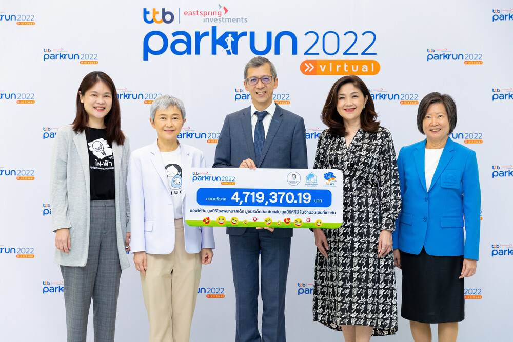 กรุงเทพฯ 19 ธันวาคม 2565 : ทีเอ็มบีธนชาตและอีสท์สปริง อินเวสท์เมนทส์ ประกาศความสำเร็จกิจกรรมเดิน-วิ่งการกุศลแห่งปี “ทีทีบี | อีสท์สปริง พาร์ครัน 2022” (ttb | Eastspring parkrun 2022) ครั้งที่ 10 งานวิ่งที่เปลี่ยน…ให้น้องๆ กลับมามีรอยยิ้มได้อีกครั้ง ด้วยการชวนทุกคนมาร่วมกัน Make REAL Change หรือสร้างการเปลี่ยนแปลงที่มีความหมายให้กับสังคมและผู้คนรอบตัวให้มีชีวิตที่ดีขึ้น