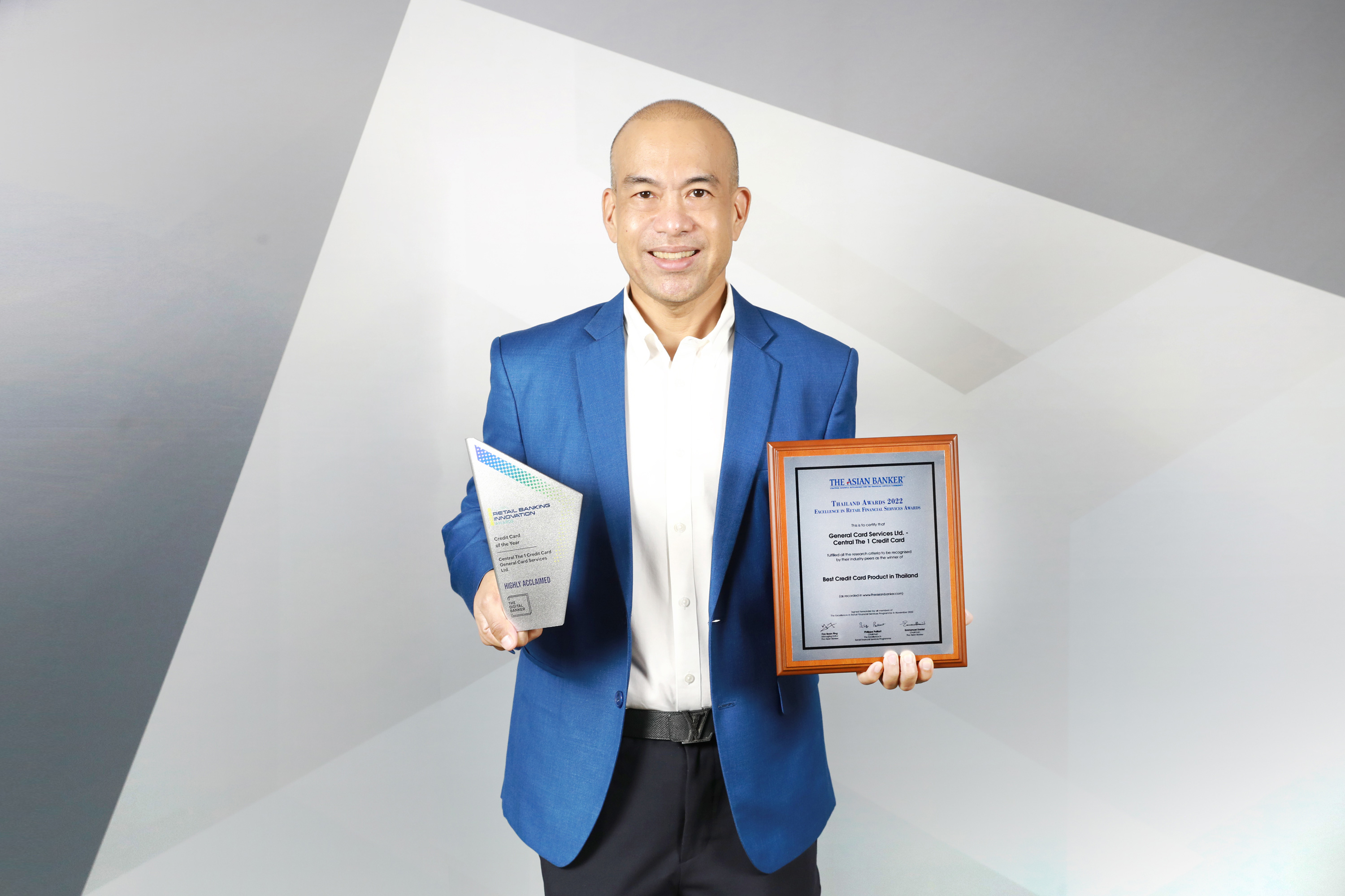 กรุงเทพฯ, 21 ธันวาคม 2565 : อธิศ รุจิรวัฒน์ กรรมการผู้จัดการ บริษัท เจเนอรัล คาร์ด เซอร์วิสเซส จำกัด เป็นตัวแทนบัตรเครดิตเซ็นทรัล เดอะวัน คว้ารางวัลชนะเลิศผลิตภัณฑ์บัตรเครดิตที่ดีที่สุด (Winner – Best Credit Card Product) จากงาน The Asian Banker Thailand Awards 2022 และรางวัลดีเด่น – บัตรเครดิตแห่งปี (Highly Acclaimed– Credit Card of the Year) จากงาน Global Retail Banking Innovation Awards 2022 จากความสำเร็จของบัตรเครดิตเซ็นทรัล เดอะวัน ที่คว้ารางวัลระดับภูมิภาคอย่างต่อเนื่อง เป็นการตอกย้ำความเป็นผู้นำในธุรกิจบัตรเครดิตในระดับสากลที่มุ่งพัฒนาผลิตภัณฑ์และการบริการที่เป็นเลิศ เพื่อสร้างความพึงพอใจสูงสุดให้กับสมาชิกบัตร ![]()