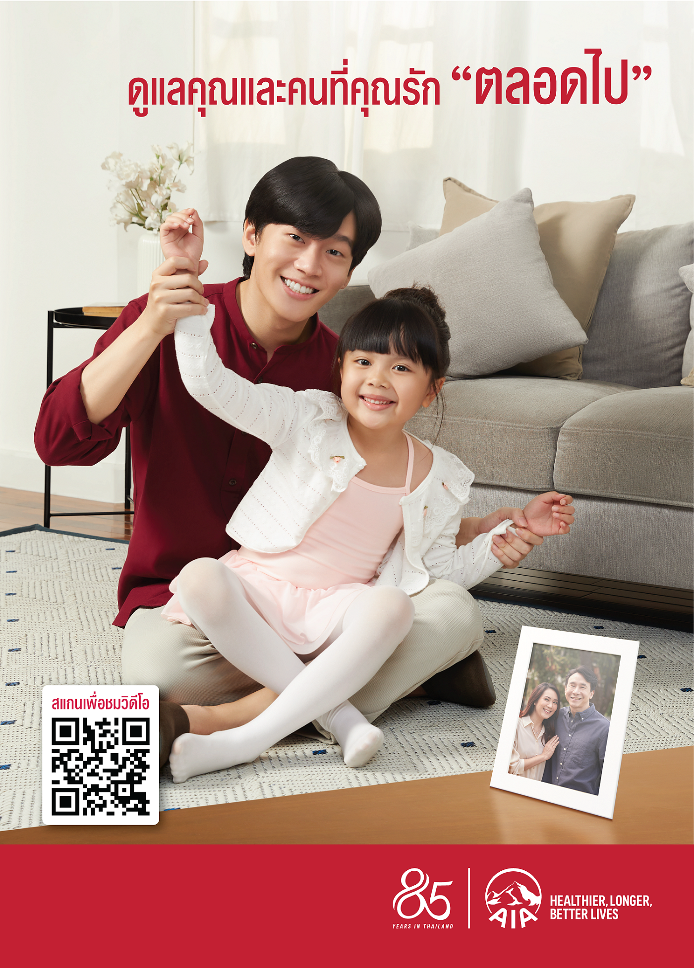 สำหรับภาพยนตร์โฆษณา “85 ปี เอไอเอ ประเทศไทย ดูแลคุณและคนที่คุณรักตลอดไป” สามารถรับชมได้ทางสื่อออนไลน์ของเอไอเอ ประเทศไทย ทั้ง AIA Official Facebook Page, AIA Thailand YouTube Channel และ Line Official Account ตั้งแต่วันนี้เป็นต้นไป คลิกลิงก์ https://youtu.be/PwXanr7Av_o หรือ สแกน QR Code เพื่อรับชมภาพยนตร์โฆษณา