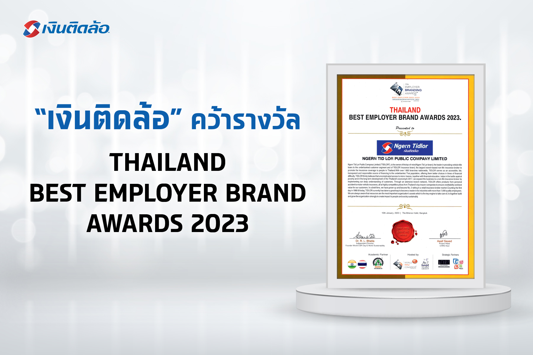 17 มกราคม 2566 : บริษัท เงินติดล้อ จำกัด (มหาชน) หรือ TIDLOR คว้ารางวัล Thailand Best Employer Brand Awards 2023 หรือสุดยอดนายจ้างดีเด่นแห่งประเทศไทยประจำปี 2566 จัดขึ้นโดย World HRD Congress สะท้อนการเป็นองค์กรที่สามารถปรับตัวได้เป็นอย่างดีเพื่อดูแลคุณภาพชีวิตและการพัฒนาศักยภาพของพนักงานอย่างต่อเนื่อง
