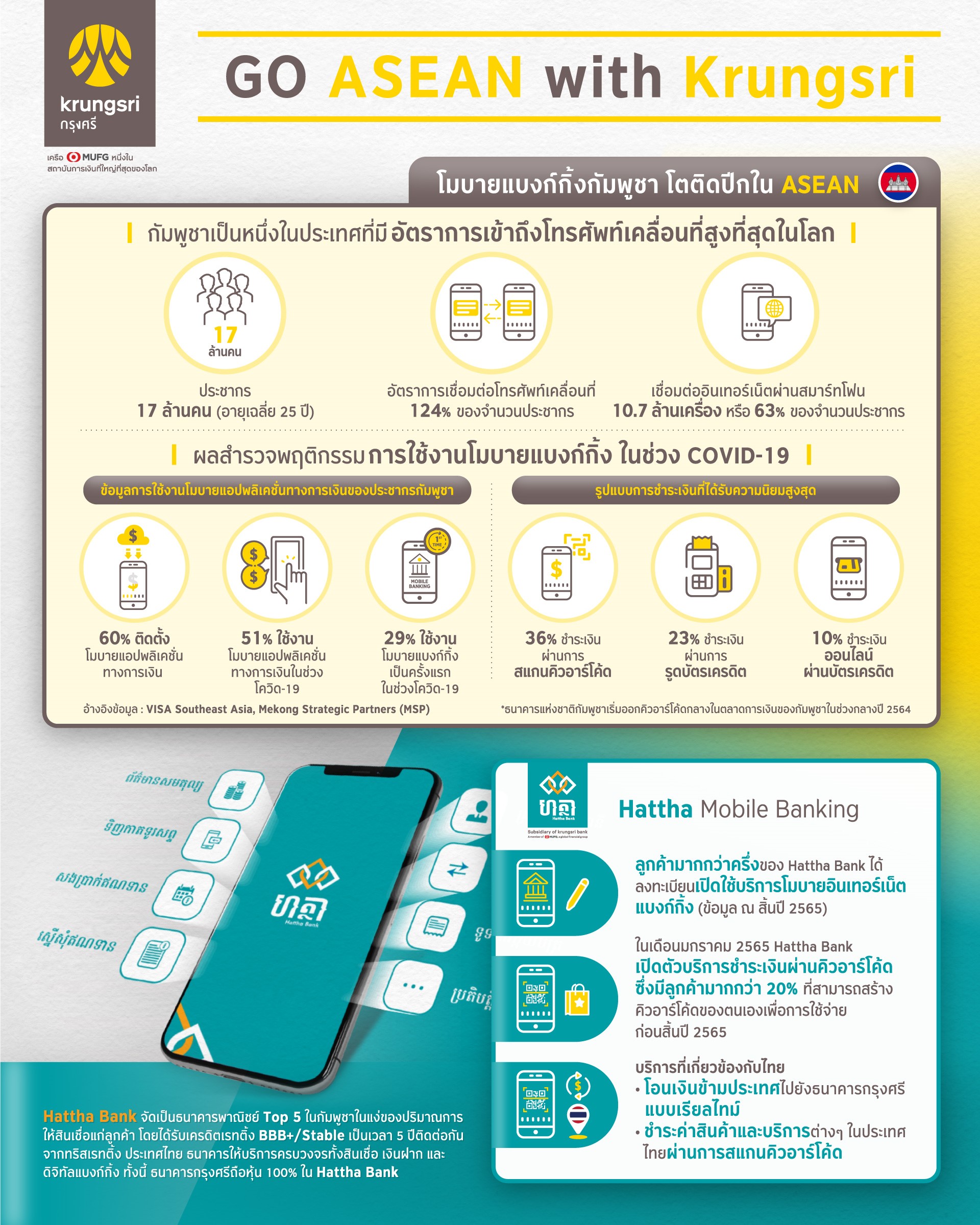 ช่วงปลายปี 2565 ที่ผ่านมาลูกค้ามากกว่าครึ่งของ Hattha Bank ได้ลงทะเบียนเปิดใช้บริการโมบายแบงก์กิ้ง ซึ่งสอดรับกับการใช้งานบริการชำระเงินและการโอนเงินทางดิจิทัลที่เพิ่มสูงขึ้นในประเทศกัมพูชา โดยในปี 2564 มากกว่าหนึ่งในสาม (36%) ของชาวกัมพูชานิยมชำระเงินแบบดิจิทัลผ่านการสแกนคิวอาร์โค้ด ซึ่งแซงหน้าการชำระเงินโดยตรงผ่านการรูดบัตรเครดิต (23%) และการชำระเงินออนไลน์ผ่านบัตรเครดิต (10%)
