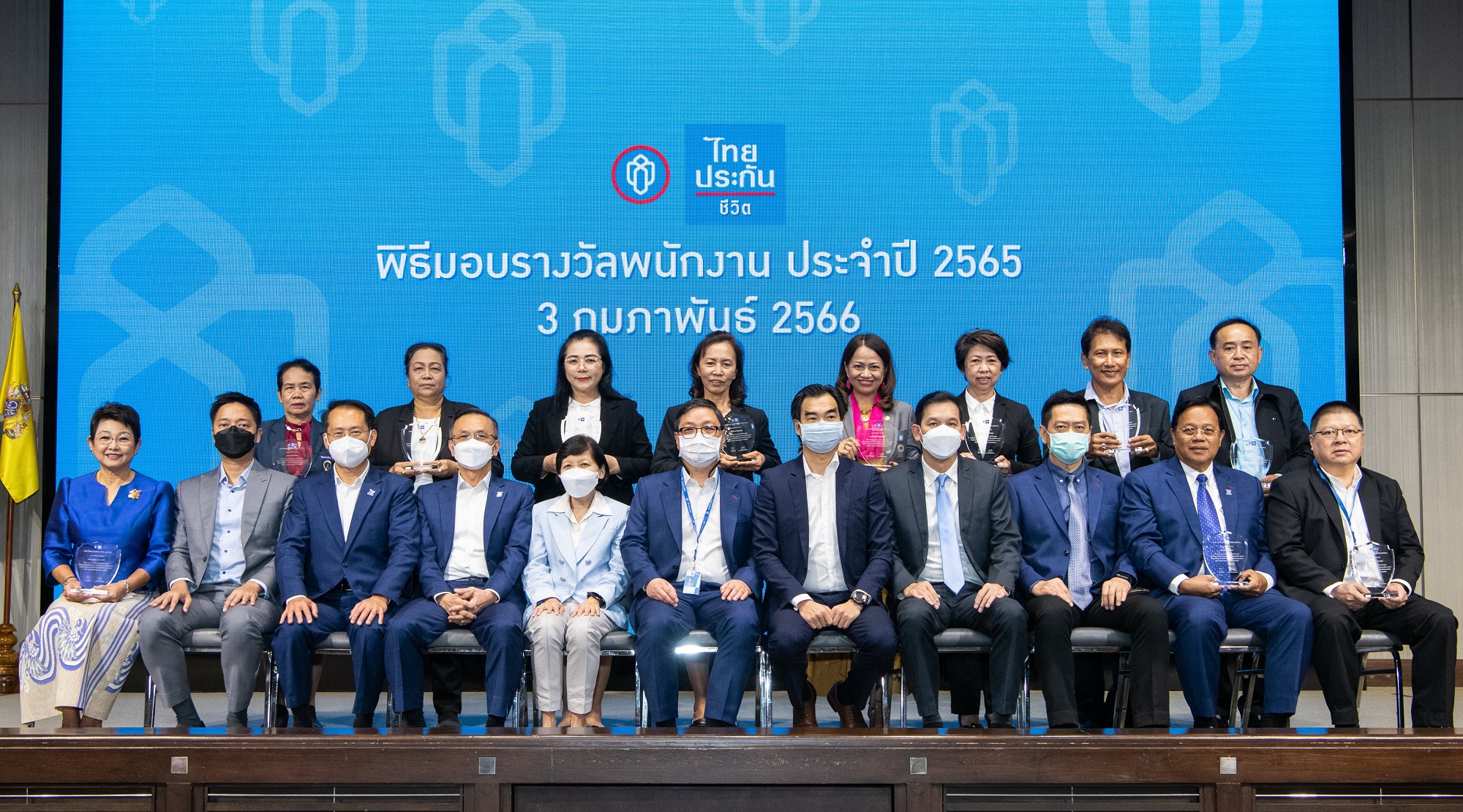 9 กุมภาพันธ์ 2566 : ไชย ไชยวรรณ กรรมการและประธานเจ้าหน้าที่บริหาร บริษัท ไทยประกันชีวิต จำกัด (มหาชน) พร้อมผู้บริหารระดับสูง ร่วมมอบรางวัลแก่ผู้บริหาร พนักงาน และผู้บริหารฝ่ายขายที่ปฏิบัติงานจนครบวาระเกษียณอายุ และผู้ที่ปฏิบัติงานครบ 40 ปี 30 ปี 20 ปี 10 ปี ประจำปี 2565 จำนวนรวม 955 คน เพื่อเชิดชูเกียรติบุคลากรในฐานะกำลังสำคัญที่ผลักดันให้องค์กรเติบโตอย่างยั่งยืน รวมถึงเป็นขวัญกำลังใจในการปฏิบัติงาน ณ อาคารไทยประกันชีวิต สำนักงานใหญ่