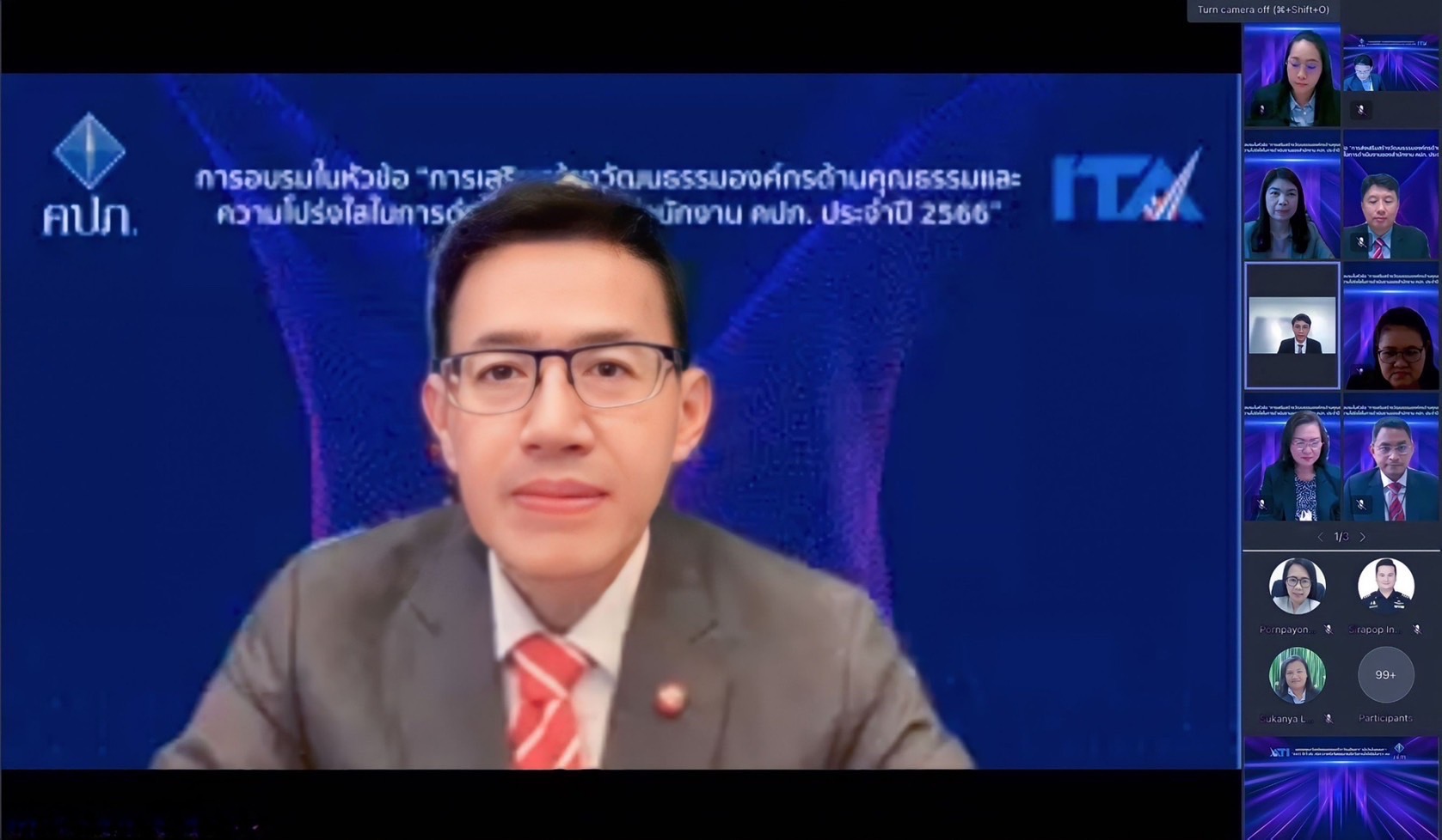 22 กุมภาพันธ์ 2566 : ดร. สุทธิพล ทวีชัยการ เลขาธิการคณะกรรมการกำกับและส่งเสริมการประกอบธุรกิจประกันภัย (เลขาธิการ คปภ.) เป็นประธานเปิดการอบรมให้กับบุคลากรของสำนักงาน คปภ. ในหัวข้อ “การเสริมสร้างวัฒนธรรมองค์กรด้านคุณธรรมและความโปร่งใสในการดำเนินงานของสำนักงาน คปภ. ประจำปี 2566” เมื่อวันที่ 21 กุมภาพันธ์ 2566 ผ่านระบบ Microsoft Teams เพื่อเป็นการเตรียมความพร้อมสำหรับการเข้ารับการประเมินคุณธรรมและความโปร่งใสในการดำเนินงานของหน่วยงานภาครัฐ หรือ ITA (Integrity and Transparency Assessment) ในปี 2566 ในการเสริมสร้างวัฒนธรรมด้านคุณธรรมและองค์กรด้านความโปร่งใสในการดำเนินงานของสำนักงาน คปภ.