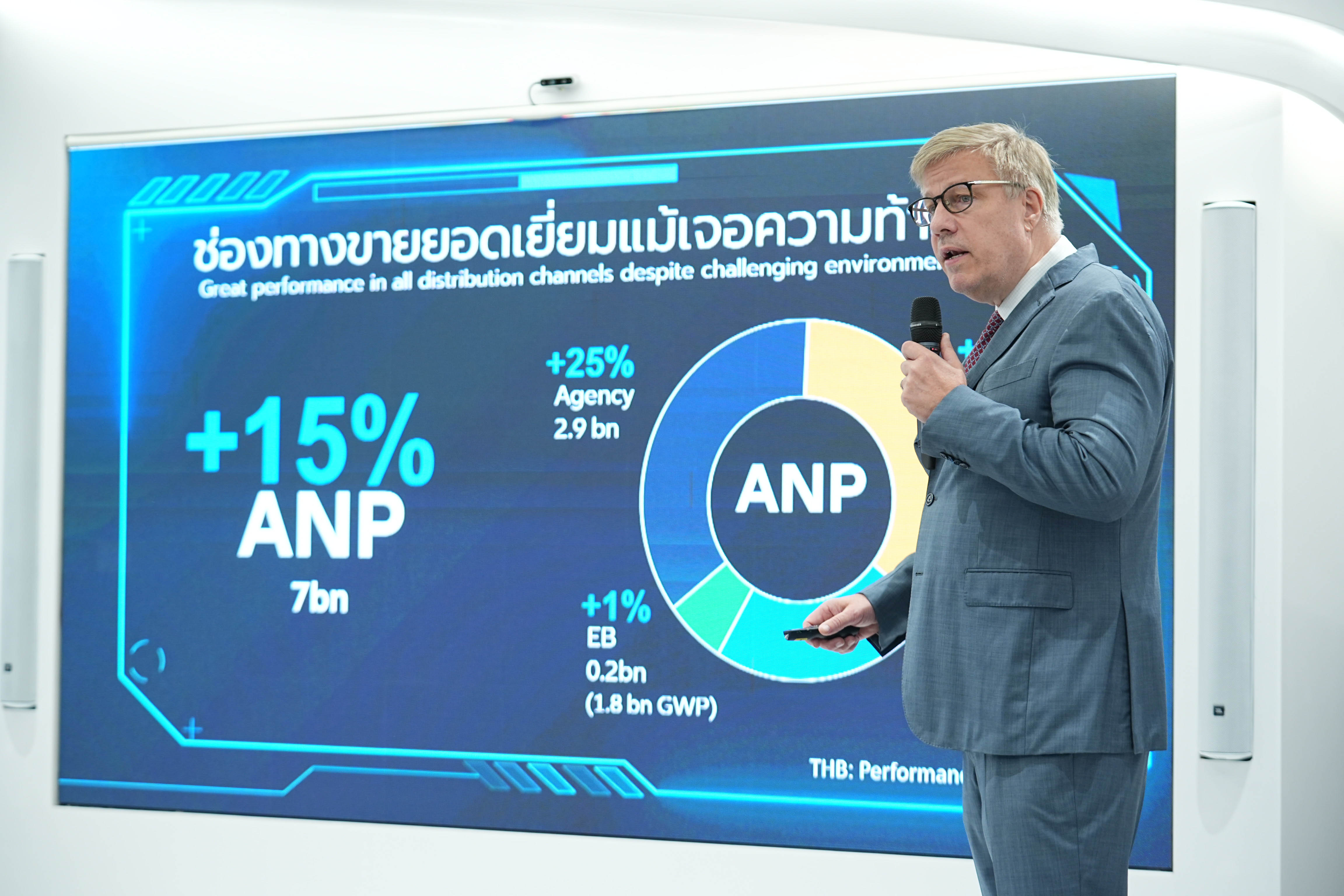 มร.โทมัส วิลสัน กล่าวว่า ในปี 2565 ที่ผ่านมา อลิอันซ์ อยุธยา ประกันชีวิต ทำผลงานได้ยอดเยี่ยม ทุกช่องทางการขายทำผลงานน่าพอใจเป็นอย่างยิ่งทำให้ผลการดำเนินธุรกิจในภาพรวมเติบโตสูงเหนือตลาด โดยเบี้ยประกันภัยรับปีแรกรายปี (ANP) เติบโตถึง 15% อยู่ที่ 7 พันล้านบาท มาจากช่องทางตัวแทน 2.9 พันล้านบาท เติบโต 25% ช่องทางขายผ่านธนาคาร 2.7 พันล้านบาท เติบโต 17% และช่องทางอื่นๆ อาทิ