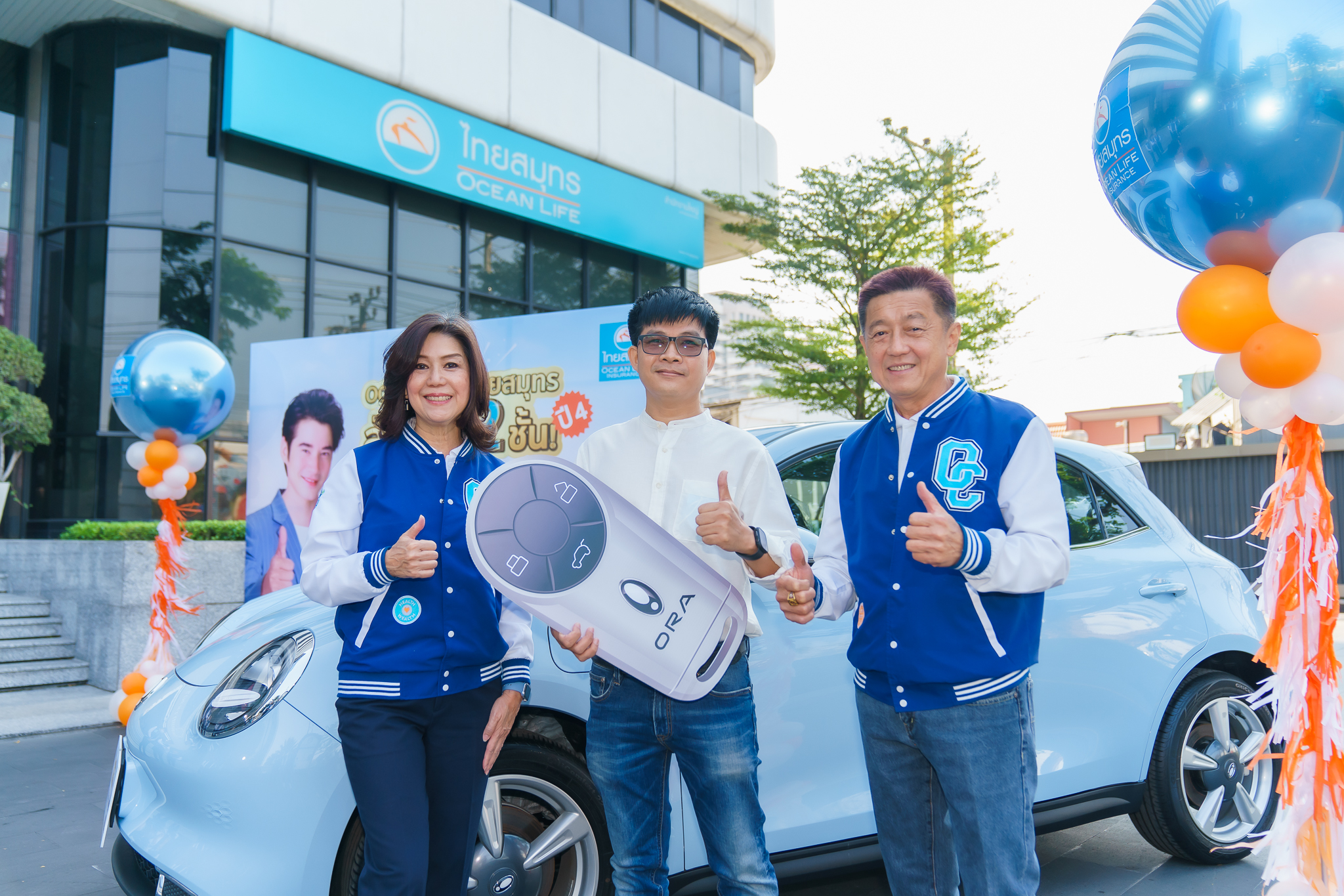 28 กุมภาพันธ์ 2566 : บมจ.ไทยสมุทรประกันชีวิต รักคือพลังของชีวิต โดยคุณนุสรา (อัสสกุล) บัญญัติปิยพจน์ ประธานเจ้าหน้าที่บริหารและกรรมการผู้จัดการ (CEO) พร้อมด้วยคุณสมชัย อาภรณ์ศิริพงษ์ Deputy Chief Executive Officer ร่วมแสดงความยินดีและมอบรางวัลใหญ่ รถยนต์ไฟฟ้า ORA Good CAT จากแคมเปญ “OCEAN LIFE ไทยสมุทร ลุ้นโชค 2 ชั้น ปี 4” ให้แก่ คุณรังสรรค์ พณิชธนโชติ ลูกค้าผู้โชคดีจากสาขาสมุทรปราการ ซึ่งลูกค้าได้ไว้วางใจให้ OCEAN LIFE ไทยสมุทร ใช้พลังความรักดูแลชีวิต ด้วยการส่งมอบความคุ้มครองชีวิต และสุขภาพ เพื่อสร้างหลักประกันที่มั่นคง และสร้างความมั่นใจในการใช้ชีวิตท่ามกลางความไม่แน่นอนต่างๆ