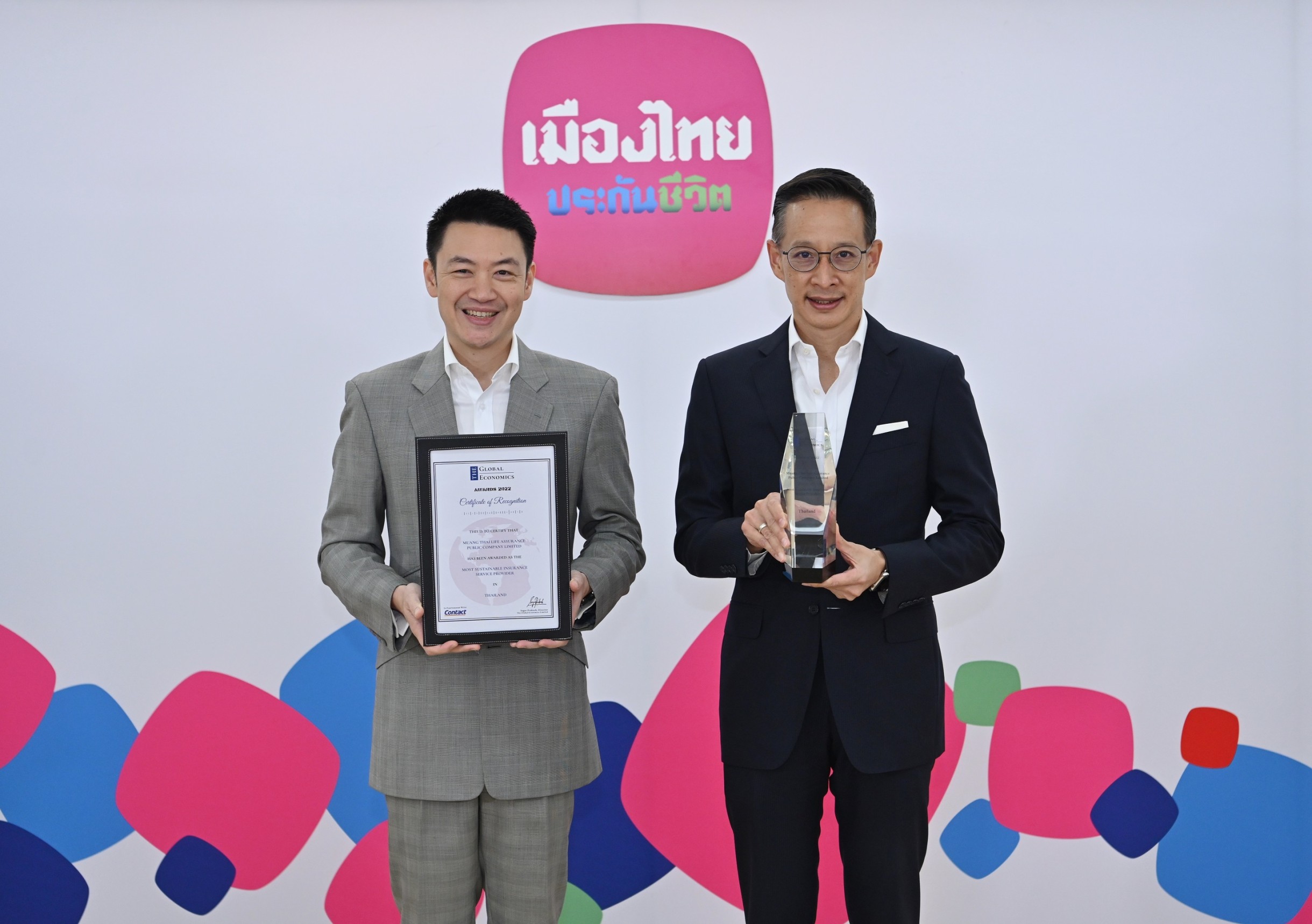 2 มีนาคม 2566 : นายสาระ ล่ำซำ ประธานเจ้าหน้าที่บริหาร พร้อมด้วย ดร.สุธี โมกขะเวส กรรมการผู้จัดการ บริษัท เมืองไทยประกันชีวิต จำกัด (มหาชน) รับรางวัล “Most Sustainable Insurance Service Provider” จากงานประกาศรางวัล The Global Economics Awards 2022 โดยนิตยสาร The Global Economics ประเทศอังกฤษ เป็นรางวัลที่มอบให้แก่องค์กรในฐานะเป็นบริษัทประกันชีวิตของไทย ที่มีความแข็งแกร่งทั้งทางด้านการเงิน การบริการและภาพลักษณ์ ภายใต้หลักธรรมาภิบาล และระบบการบริหารความเสี่ยง ระดับมาตรฐานสากล มุ่งเน้นตอบสนองความต้องการของลูกค้าเป็นสำคัญ เพื่อส่งมอบสินค้าและบริการที่เหมาะสม ในการสร้างความมั่นคงทางการเงิน และเติมเต็มชีวิตของลูกค้าได้อย่างสมบูรณ์ตลอดช่วงชีวิต ให้ความสำคัญกับความยั่งยืนในระยะยาว พร้อมทั้งมุ่งมั่นที่จะส่งมอบความสุขแก่ลูกค้า พนักงานพันธมิตรทางธุรกิจ ผู้ถือหุ้น และสังคม ![]()