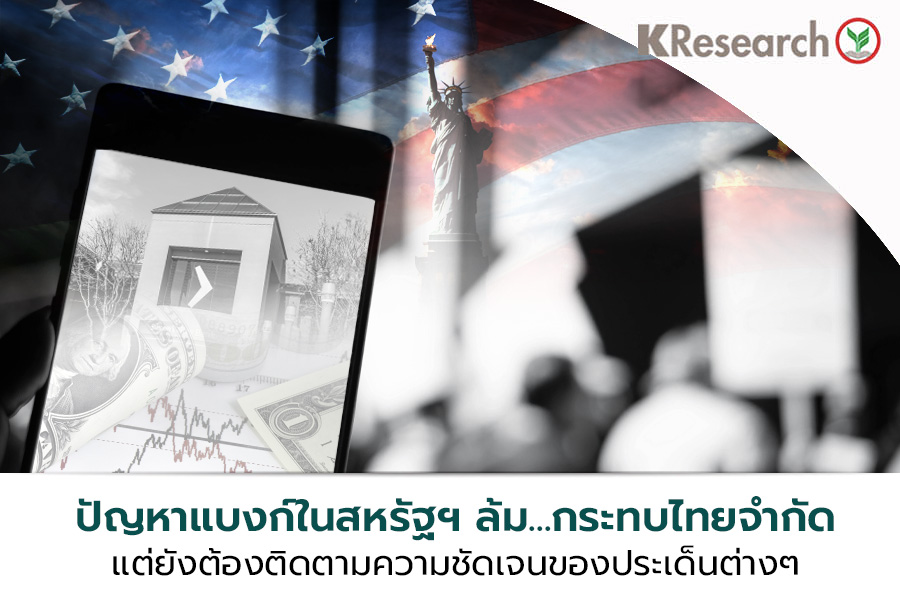 โดยสรุป แม้กรณีปัญหาความอ่อนแอของแบงก์ในสหรัฐฯ (Silicon Valley Bank และ Signature Bank) น่าจะไม่ลุกลามบานปลายจนกลายเป็นความเสี่ยงเชิงระบบในเวลานี้ ท่ามกลางความพยายามของทางการสหรัฐฯ ในการฟื้นฟูความเชื่อมั่นของผู้ฝากเงิน รวมถึงปัญหาของทั้ง 2 แบงก์มีต้นตอมาจากความไม่สมดุลในโครงสร้างในพอร์ตสินทรัพย์และหนี้สิน (Silicon Valley Bank เน้นกลุ่มลูกค้าเทคฯ Venture Capital และ Startups ขณะที่ Signature Bank เน้นให้บริการกับบริษัทที่ทำธุรกิจ Cryptocurrency)