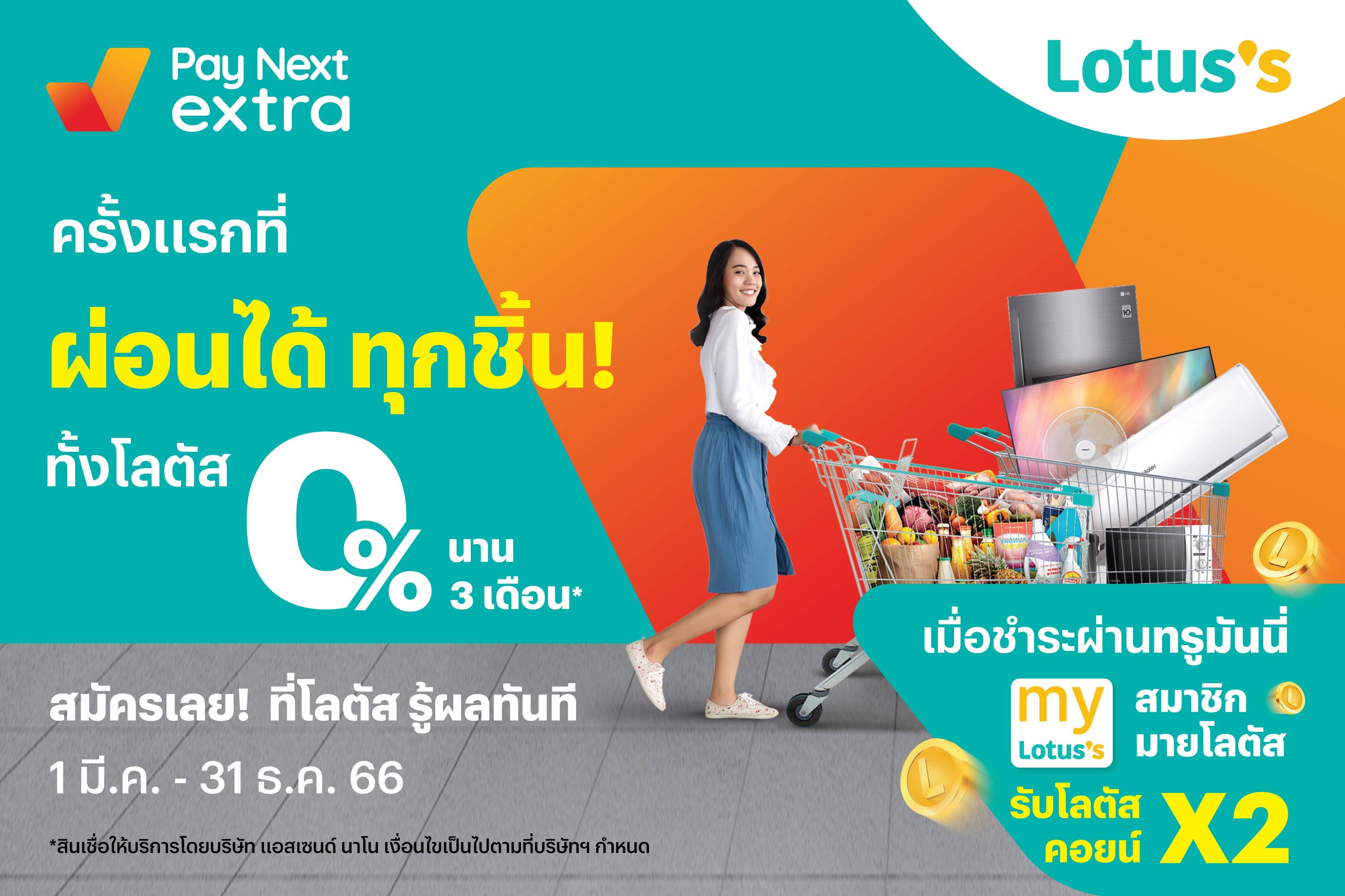 กรุงเทพฯ, 14 มีนาคม 2566 : ทรูมันนี่ จับมือ โลตัส ร่วมสร้างปรากฏการณ์สะเทือนวงการค้าปลีก ครั้งแรกที่สามารถซื้อสินค้าทุกรายการแบบผ่อนชำระได้ทั้งห้างโลตัส พร้อมโปรโมชันสุดพิเศษสำหรับลูกค้าทั้งเก่าและใหม่ ไม่ว่าจะเป็น โปรฯ ผ่อนชำระสินค้า 0% ยกห้าง ผ่านบริการ เพย์ เน็กซ์ เอ็กซ์ตร้า (Pay Next Extra) วงเงินสะดวกใช้ ผ่อนสบาย[1] พร้อมรับเครดิตเงินคืน[2] และโลตัสคอยน์เพิ่มเป็น 2 เท่า[3] เมื่อชำระสินค้าด้วยทรูมันนี่ ตั้งแต่วันที่ 1 มีนาคม – 31 ธันวาคม 2566