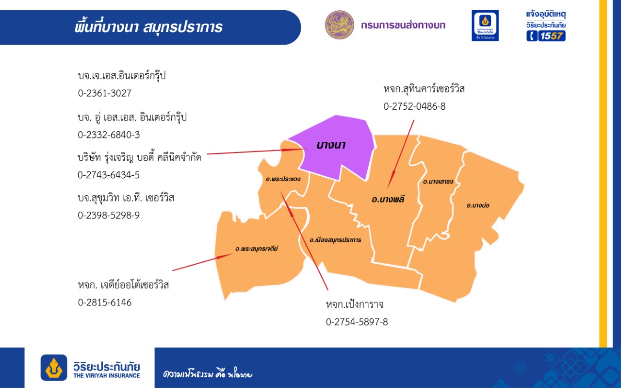สำหรับศูนย์ซ่อมมาตรฐานวิริยะประกันภัยที่เข้าร่วมโครงการ จำนวน 31 แห่ง ได้แก่ 1. บริษัท เฮงบอดี้คาร์ เซอร์วิส จำกัด 2. บริษัท วงษ์ศิริเลิศ คาร์ เซอร์วิส (1997) จำกัด 3. บริษัท เจริญภัณฑ์ยนตรกิจ เซอร์วิส จำกัด 4. บริษัท นที อินเตอร์เซอร์วิส จำกัด สาขา 1 5. บริษัท อู่แม่กลอง จำกัด 6. อู่ร่วมมิตรการาจ 7. บริษัท เอส ซี ซี 65 การาจ จำกัด 8. บริษัท อ.พิพัฒน์ จำกัด 9. บริษัท คุงการาจ จำกัด 10. บริษัท เซอร์กิตบริการ จำกัด 11. บริษัท เพอร์เฟคท์ สปีด ไลน์ จำกัด 12. บริษัท อู่บอส 888 การาจ จำกัด 13. บริษัท ธนพัฒน์ ออโต้ เซ็นเตอร์ จำกัด 14. บริษัท อู่กังวานชัยการช่าง จำกัด 15. บริษัท อู่วิชัยยนต์ จำกัด
