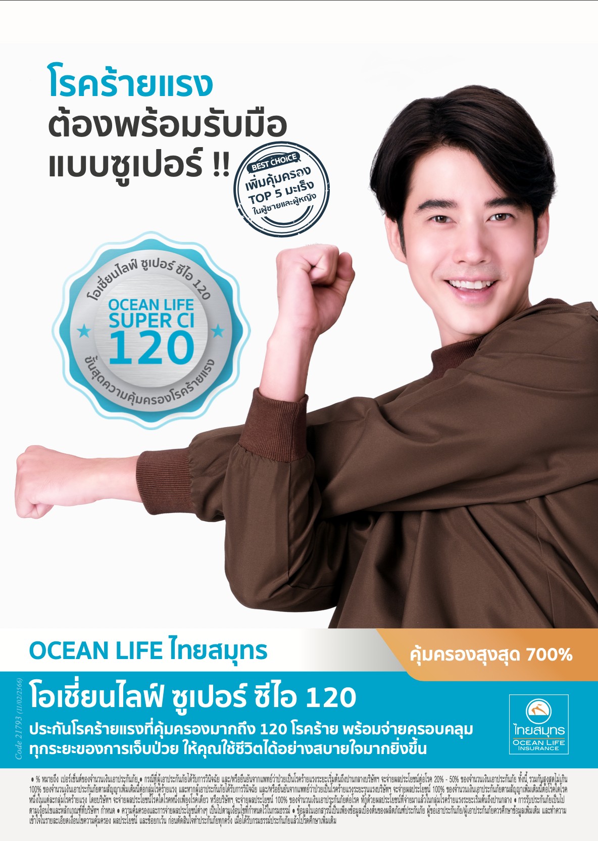 24 มีนาคม 2566 : บมจ.ไทยสมุทรประกันชีวิต รักคือพลังของชีวิต โดยคุณนุสรา (อัสสกุล) บัญญัติปิยพจน์ ประธานเจ้าหน้าที่บริหารและกรรมการผู้จัดการ (CEO) เผยว่า OCEAN LIFE ไทยสมุทร ได้สร้างสรรค์แบบประกันคุ้มครองโรคร้ายแรงใหม่! สัญญาเพิ่มเติมโอเชี่ยนไลฟ์ ซูเปอร์ ซีไอ 120 (CI120) หากเกิดป่วยเป็นโรคร้ายแรงก็มีเงินก้อนเอาไว้เพื่อแบ่งเบาภาระของครอบครัว เรื่องค่ารักษาพยาบาล และเพิ่มโอกาสในการรักษาโรคร้ายแรงให้หายขาด ด้วยการเข้าถึงนวัตกรรมการรักษา ช่วยต่อเวลาความสุขให้คุณและครอบครัว ด้วยความคุ้มครองสูงสุดถึง 120 โรคร้ายแรง ใน 7 กลุ่มโรค ประกอบด้วย 6 กลุ่มโรคร้ายแรง ได้แก่