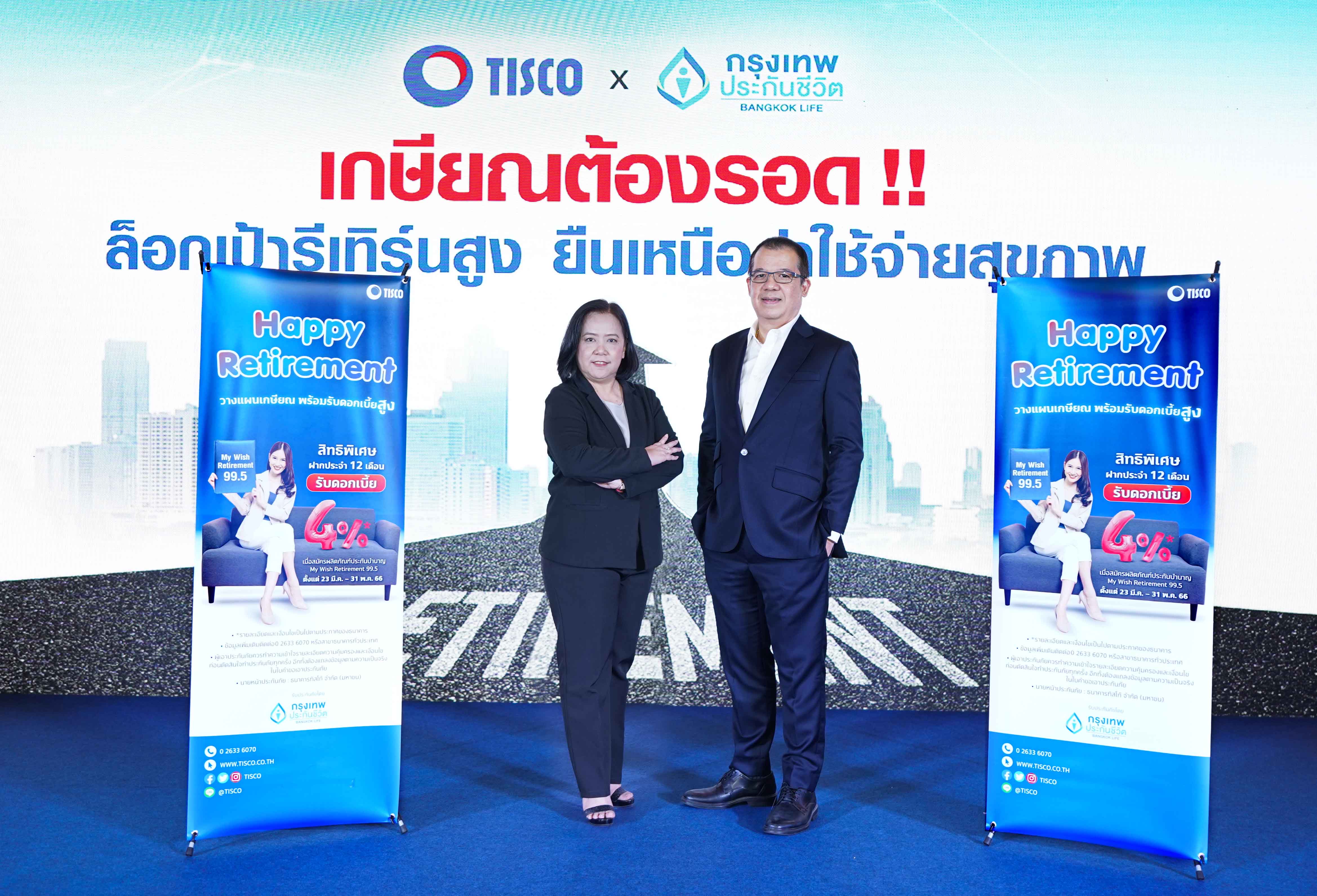 23 มีนาคม 66 : นางลัดดาวัลย์ สิทธิวรนันท์ ผู้ช่วยผู้จัดการใหญ่ สายช่องทางสถาบันการเงินและพันธมิตรทางธุรกิจ บริษัท กรุงเทพประกันชีวิต จำกัด (มหาชน) เปิดเผยว่า กรุงเทพประกันชีวิตส่งเสริมให้คนไทยมีแผนการเงินที่ดี และสอดคล้องกับความเป้าหมายในแต่ละช่วงวัย จึงประสานความร่วมมือกับธนาคารทิสโก้ จำกัด (มหาชน) ช่วยเติมเต็มความต้องการในการดูแลและวางแผนชีวิตหลังเกษียณได้อย่างรอบด้าน ทั้งความคุ้มครองและการลงทุนภายใต้การวางแผนการเงินรูปแบบใหม่