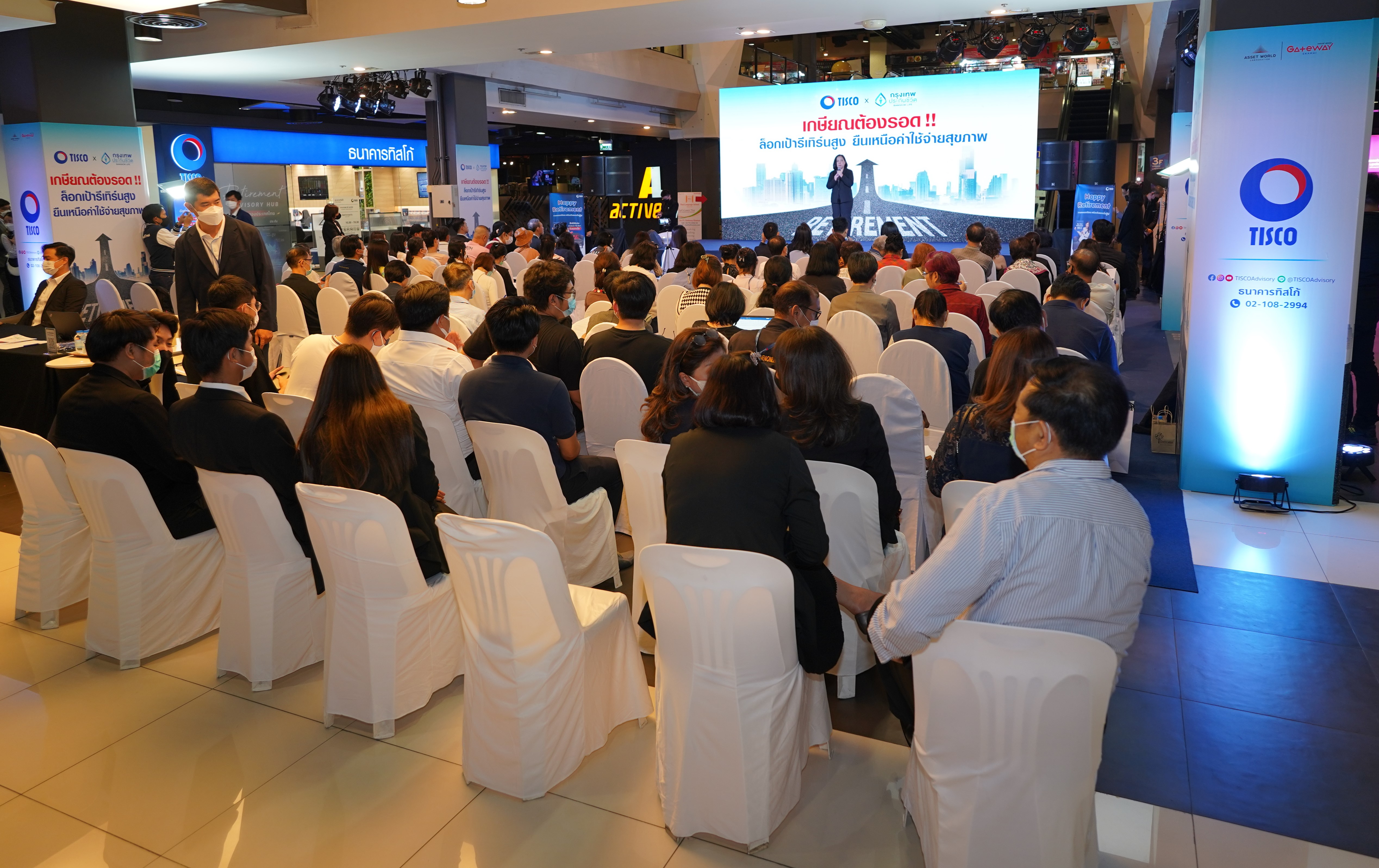 ล่าสุด ทั้งสองบริษัทได้เริ่มต้นเดินสายให้ความรู้แก่ลูกค้าและบุคคลทั่วไปที่สนใจวางแผนเกษียณใน 4 ภาคของประเทศ ได้แก่ ภาคกลาง ภาคใต้ ภาคตะวันออกเฉียงเหนือ และภาคเหนือ โดยจัดงานสัมมนาเน้นให้ความรู้ในการจัดการวางแผนเกษียณทั้งด้านการลงทุน และประกัน ด้วยการออกแบบให้เหมาะกับผู้สนใจแต่ละบุคคลผ่านโมเดลวางแผนการเงินของธนาคารทิสโก้ พร้อมให้ความรู้ด้านการดูแลสุขภาพจากโรงพยาบาลชั้นนำ