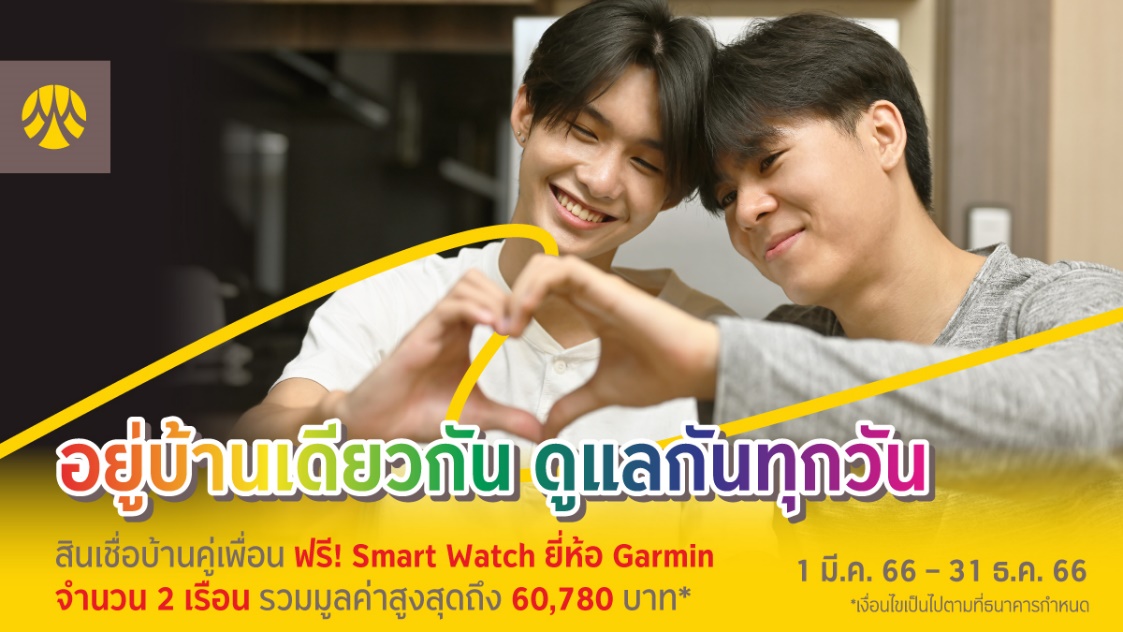27 มีนาคม 2566 : กรุงศรี (ธนาคารกรุงศรีอยุธยา จำกัด (มหาชน)) มอบสิทธิพิเศษสำหรับคู่เพื่อนที่ต้องการใช้ชีวิตร่วมกัน โดยเปิดโอกาสให้คู่เพื่อนสามารถขอ “สินเชื่อบ้านคู่เพื่อน” เพื่อซื้อที่อยู่อาศัยใหม่ หรือ มือสอง จากทุกโครงการอสังหาริมทรัพย์ ที่ธนาคารกรุงศรีอยุธยา ฟรี! ค่าธรรมเนียมสำรวจและประเมินราคาหลักประกัน มูลค่า 3,210 บาท (รวมภาษีมูลค่าเพิ่ม) และรับฟรี Smart Watch ยี่ห้อ Garmin จำนวน 2 เรือน ดังรายละเอียดต่อไปนี้