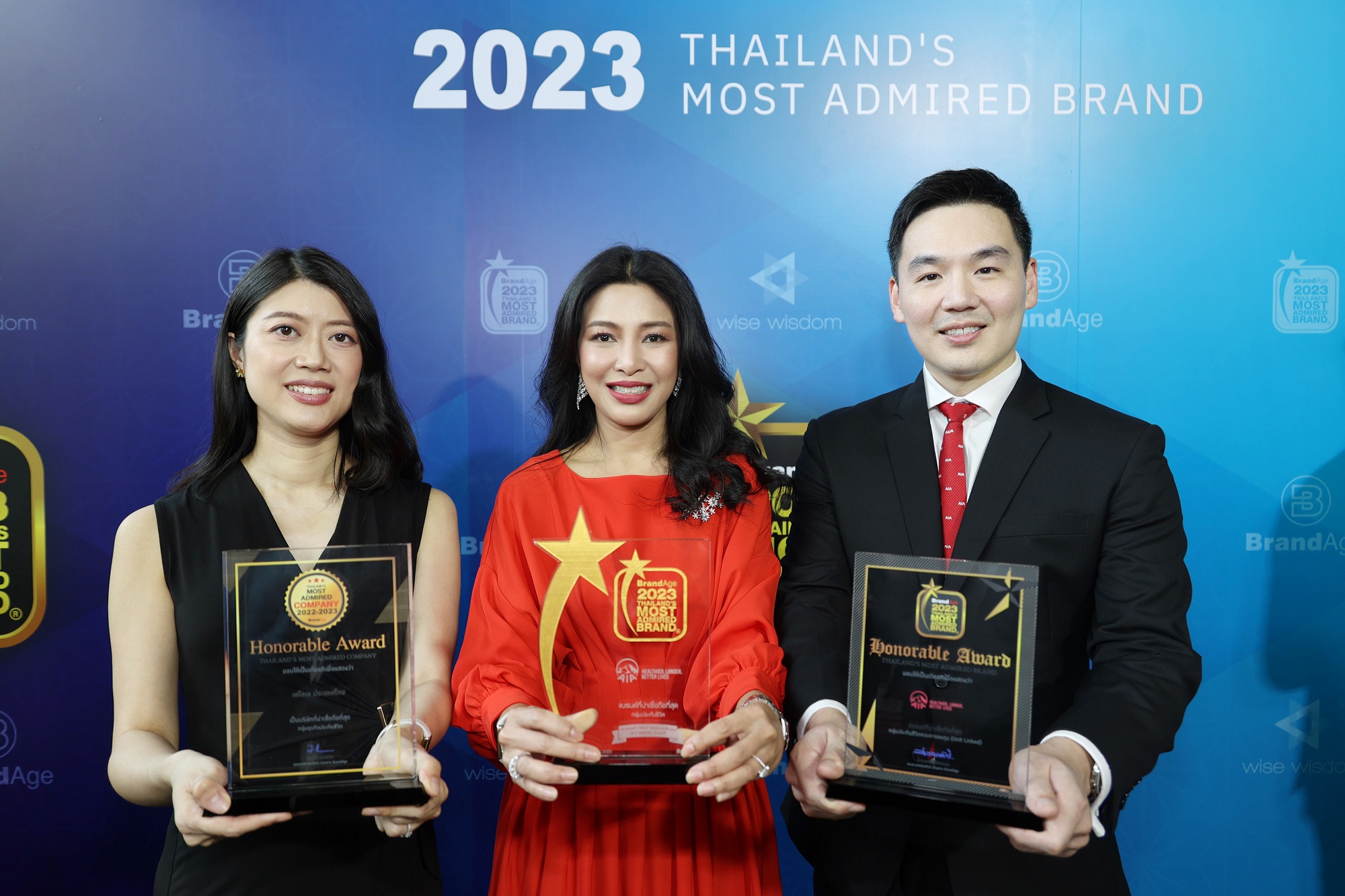 กรุงเทพฯ, 31 มีนาคม 2566 : เอไอเอ ประเทศไทย โดย รพีพร วงศ์ทองคำ (กลาง) ผู้อำนวยการฝ่ายสื่อสารองค์กรและภาพลักษณ์, ชลิดา นครชัย (ซ้าย) ผู้อำนวยการฝ่ายดิจิทัล เอ็กซ์ และ พีร พนิตพล ผู้อำนวยการฝ่ายยูนิต ลิงค์ รับรางวัลอันทรงเกียรติจากเวที “2022-2023 Thailand’s Most Admired Company และ 2023 Thailand’s Most Admired Brand” ติดต่อกันเป็นปีที่ 23 ซึ่งจัดขึ้นโดยนิตยสาร BrandAge